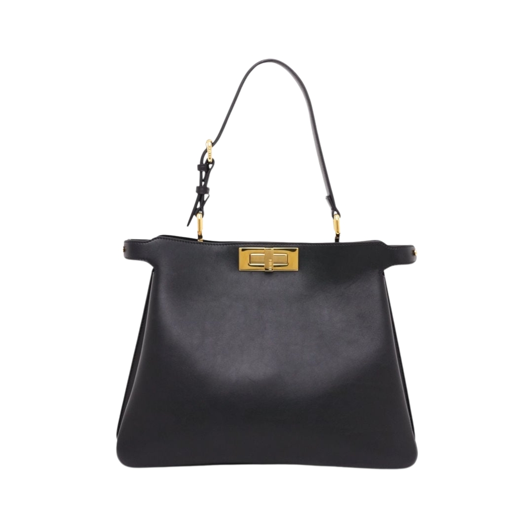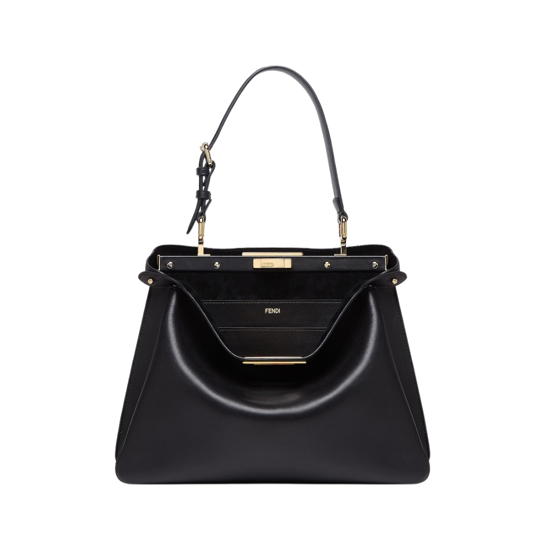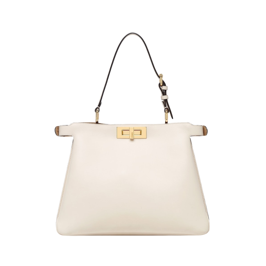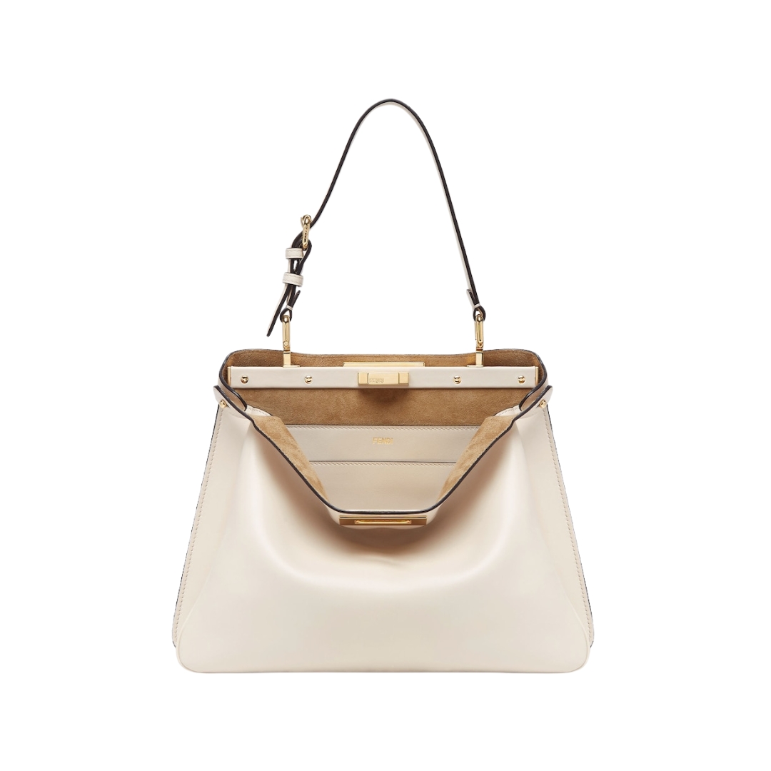 Borsa Fendi Peekaboo in pelle color latte macchiato 25.5 cm