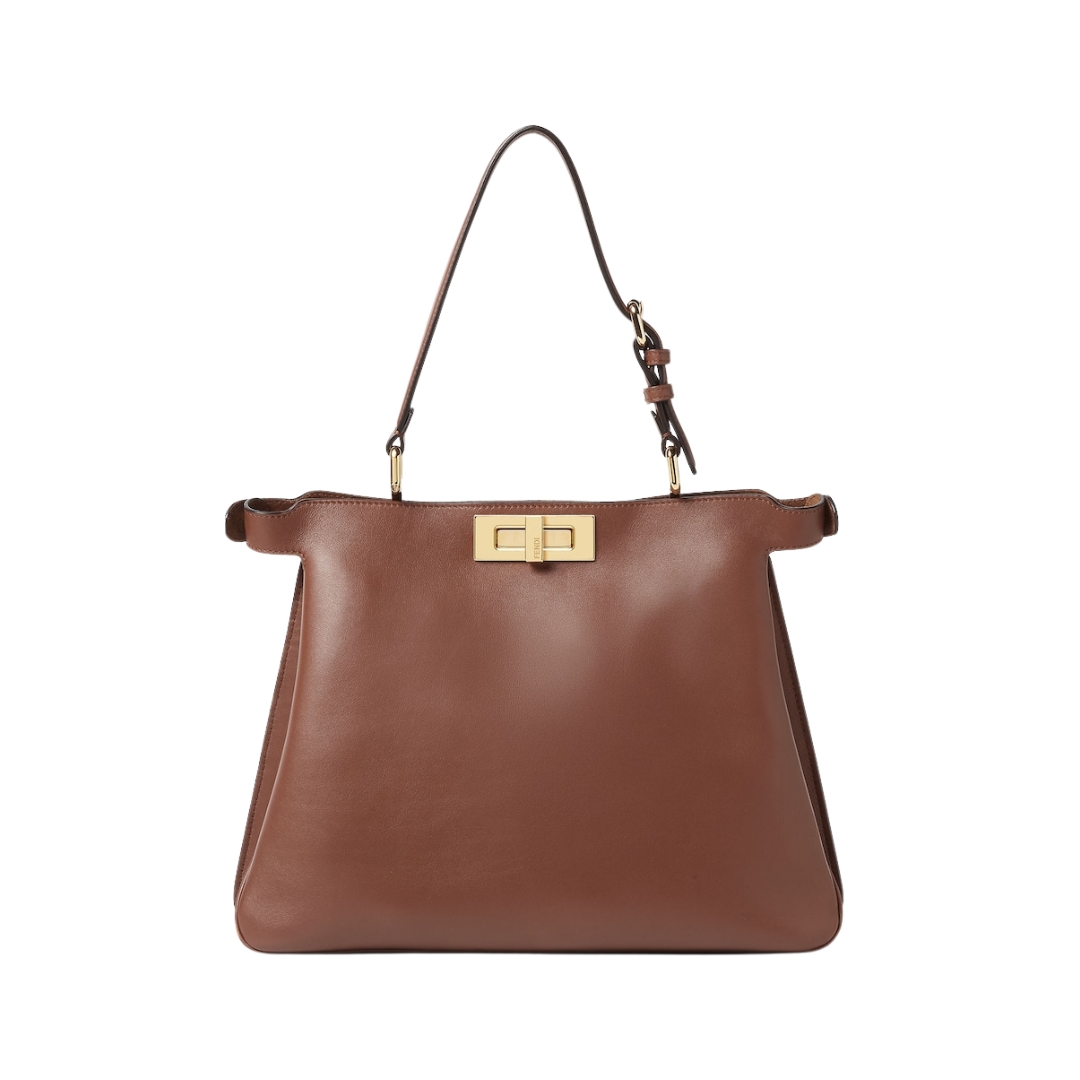 Borsa Fendi Peekaboo ISeeU in pelle marrone 25.5 cm