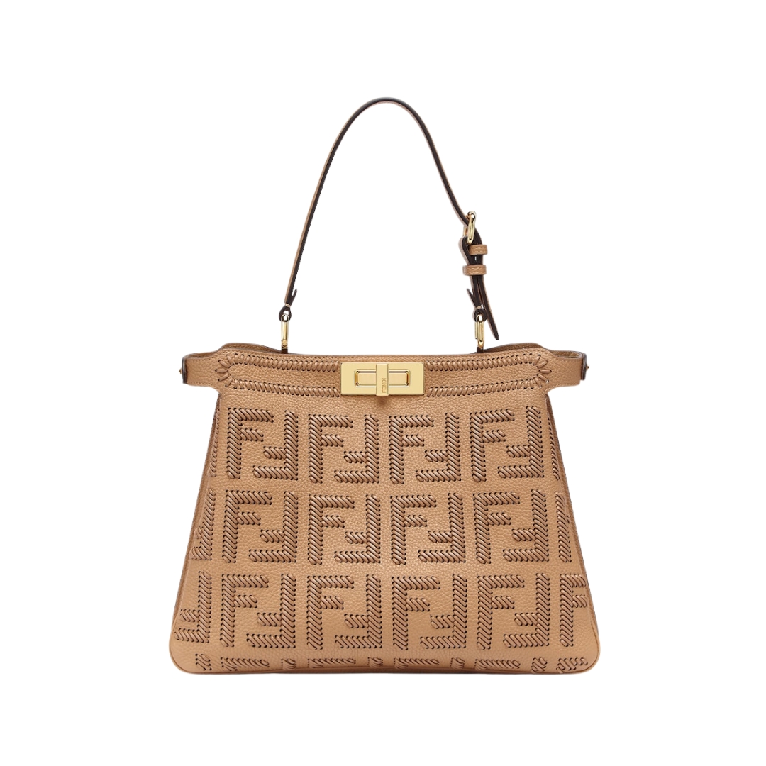 Borsa Fendi Peekaboo ISeeU in tessuto FF intrecciato color latte macchiato 25.5 cm