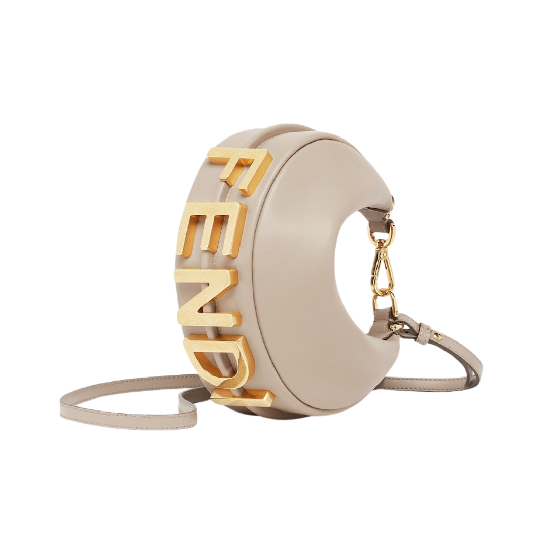 Borsa Fendi Mini Fendigraphy in pelle grigio tortora 13 cm