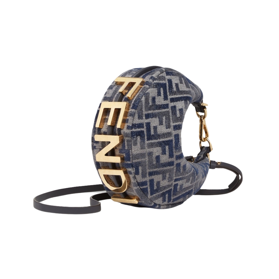 Borsa Fendi Mini Fendigraphy in chenille blu 13 cm