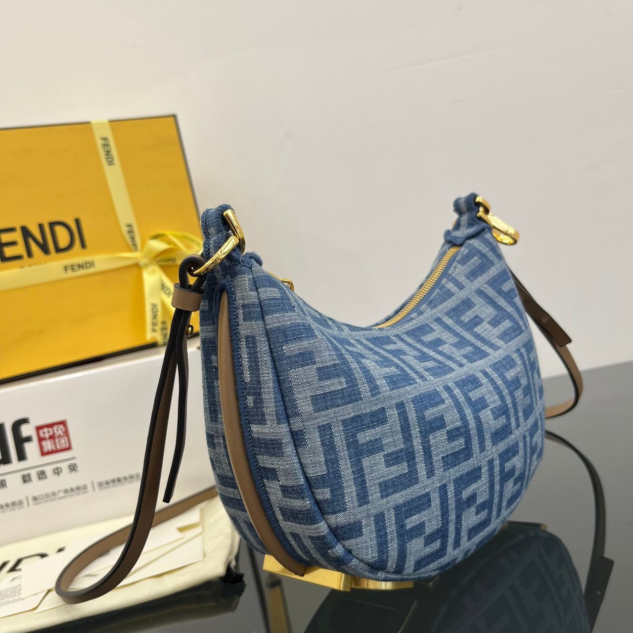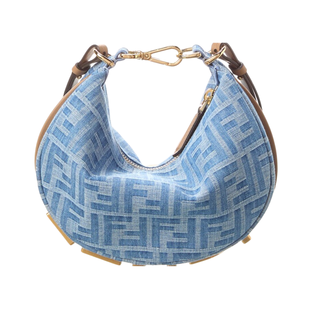 Borsa Fendi Baguette denim con frange azzurre 27 cm