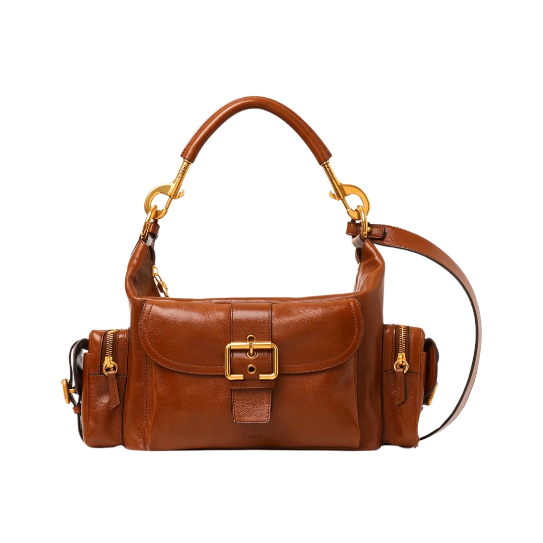 Borsa Chloé Camera in pelle lucida cognac 34 cm