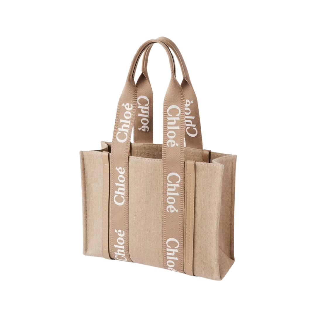 Borsa Chloé Woody in lino naturale 37 cm