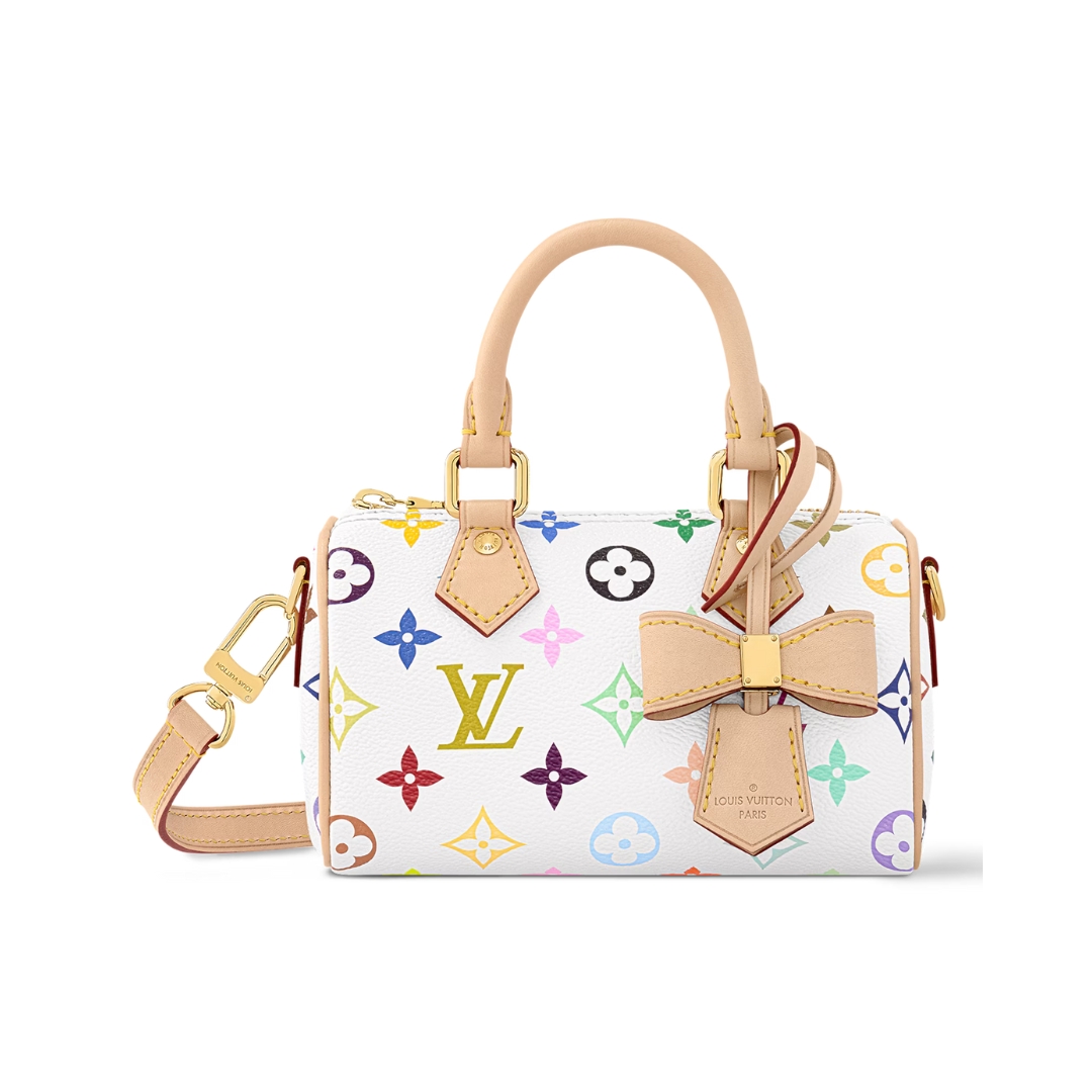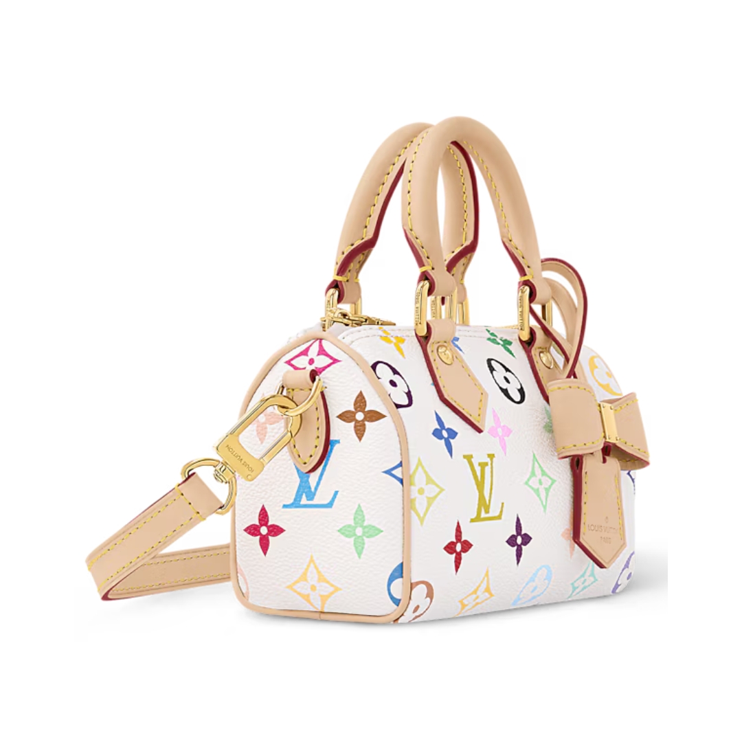 Dimensioni:● Larghezza: 16 cm● Altezza: 10 cm● Profondità: 7,5 cm Dettagli:● Materiale: Tela Monogram Multicolore (Takashi Murakami)● Colore: Bianco con