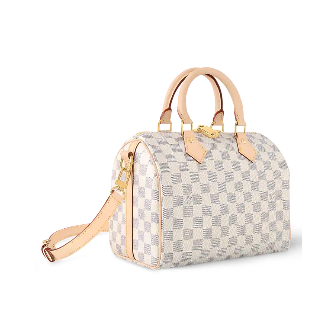 Borsa Louis Vuitton Speedy Bandoulière in tela Damier Azur 25 cm