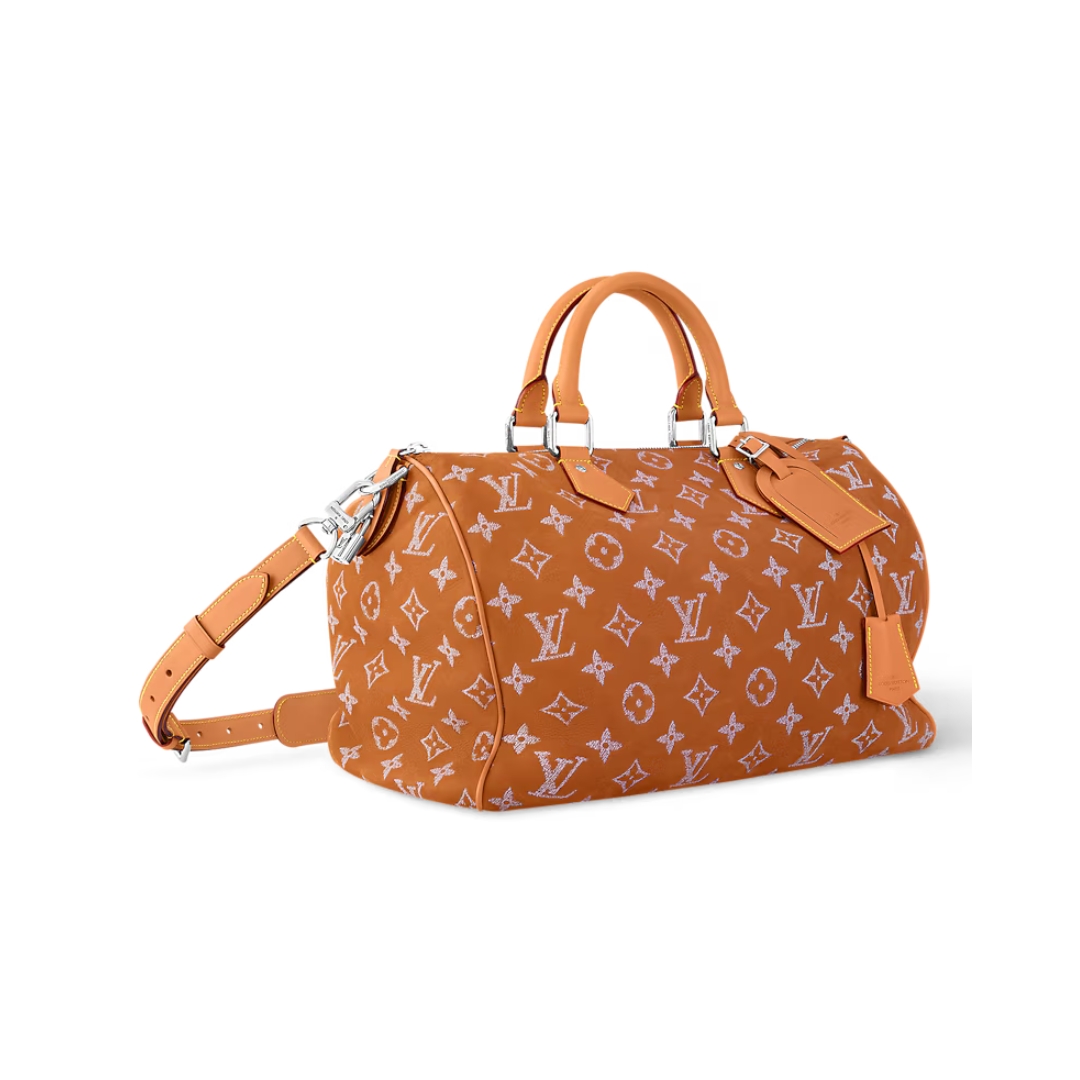 Borsa Louis Vuitton Speedy P9 Bandoulière in vitello scamosciato arancione 32 cm