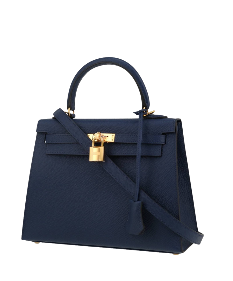 Borsa Hermès Kelly 25 in pelle Epsom blu scuro