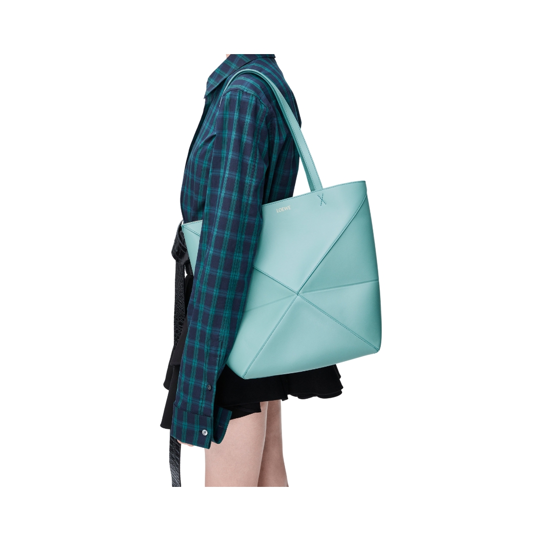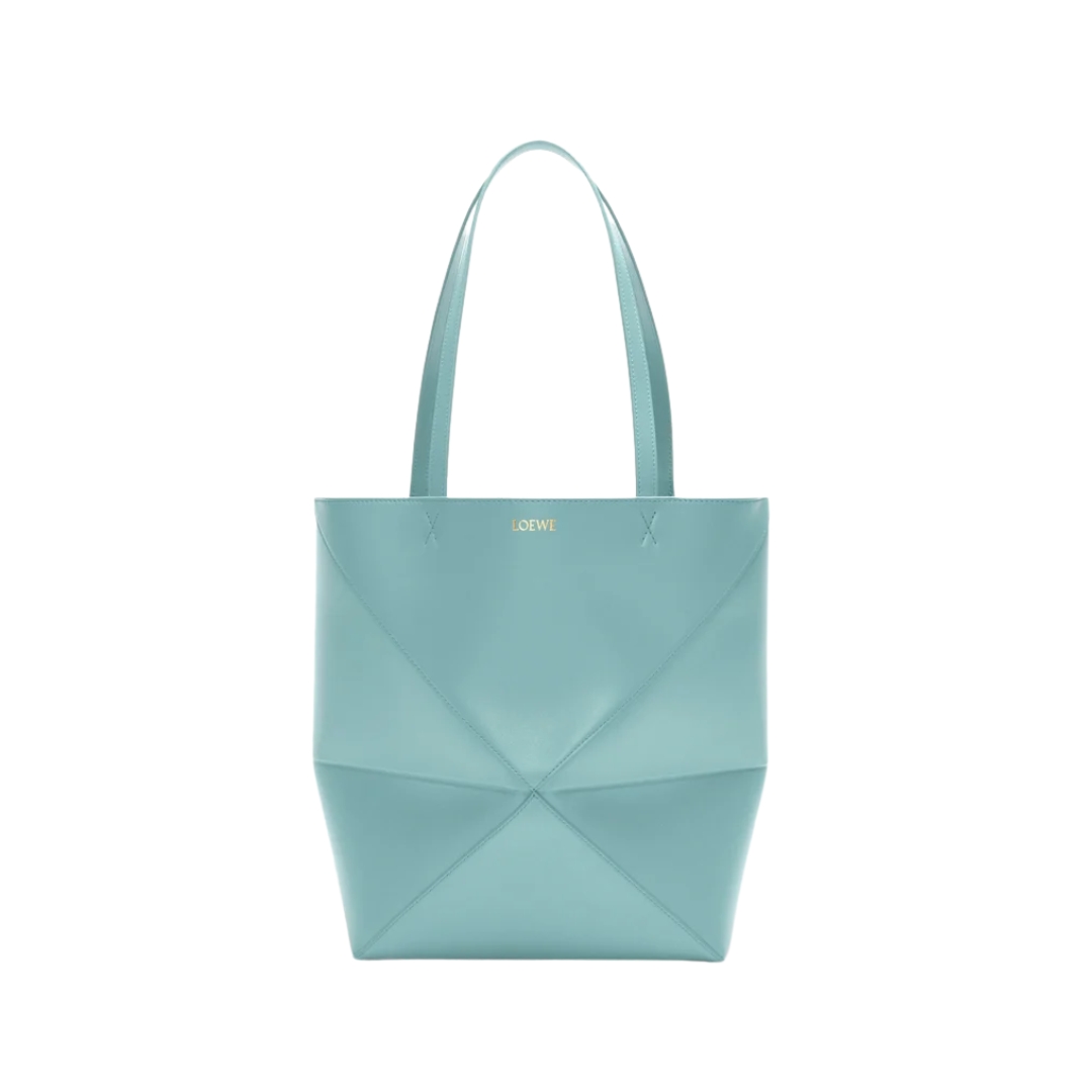 Borsa Puzzle Fold media in pelle lucida verde menta 31,5 cm