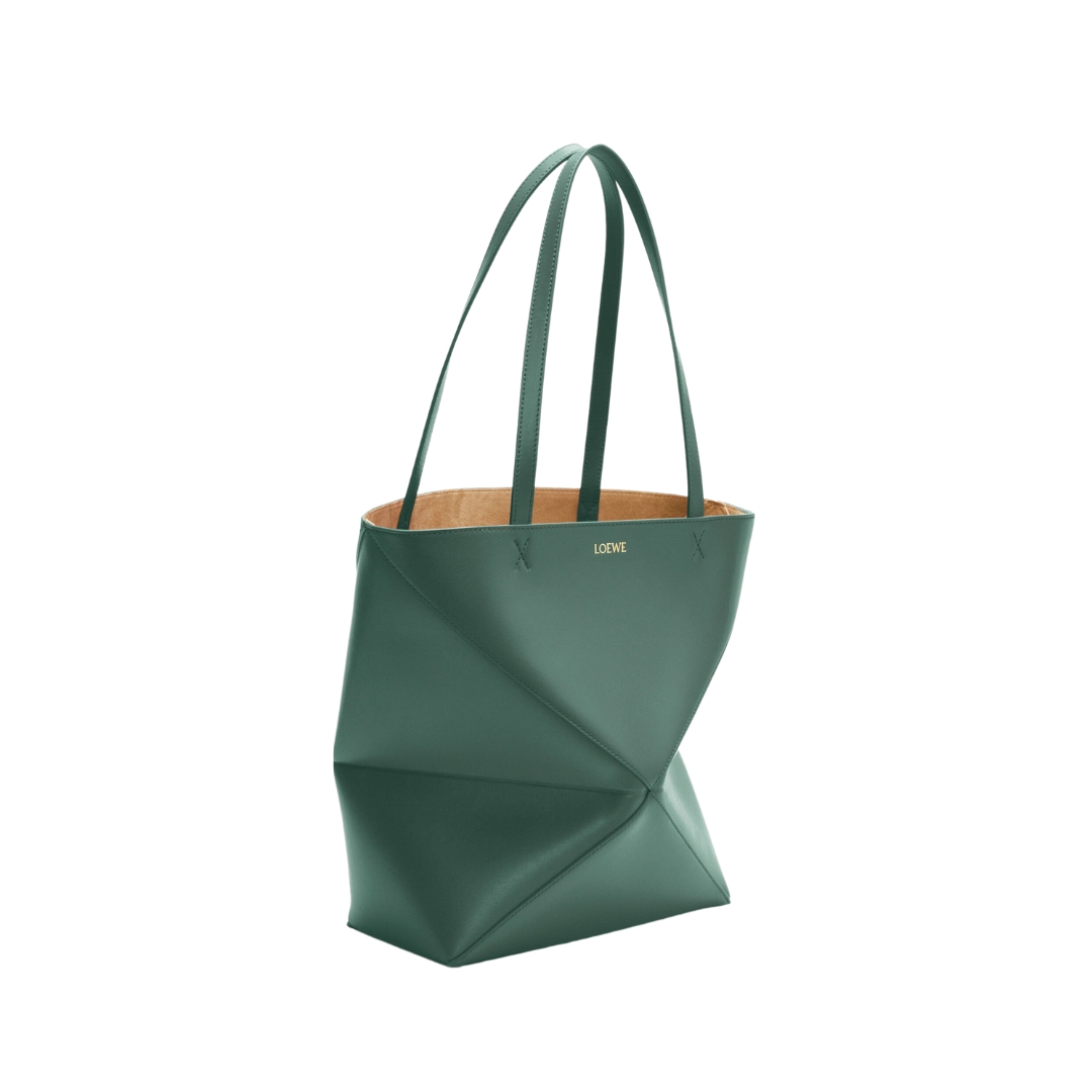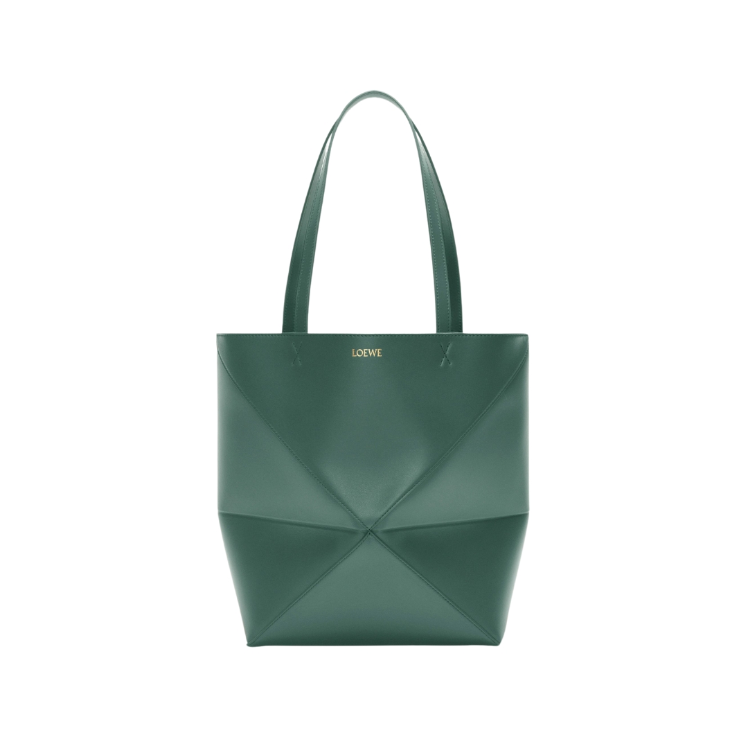 Borsa Puzzle Fold media in pelle di vitello lucida verde 31,5 cm