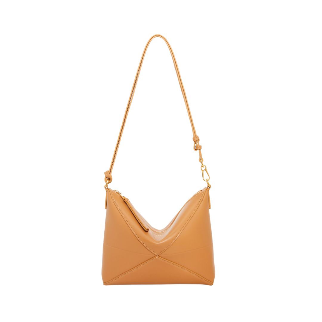 Dimensioni:● Larghezza: 15.5 cm● Altezza: 10 cm● Profondità: 7 cm Dettagli:● Materiale: Nappa di vitello● Colore: Marrone caramello e bianco●