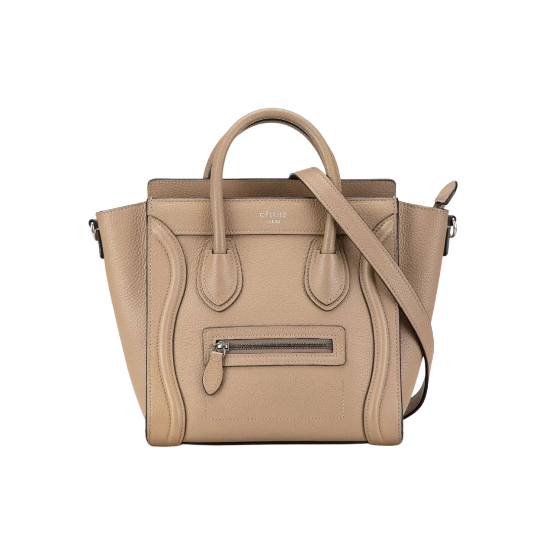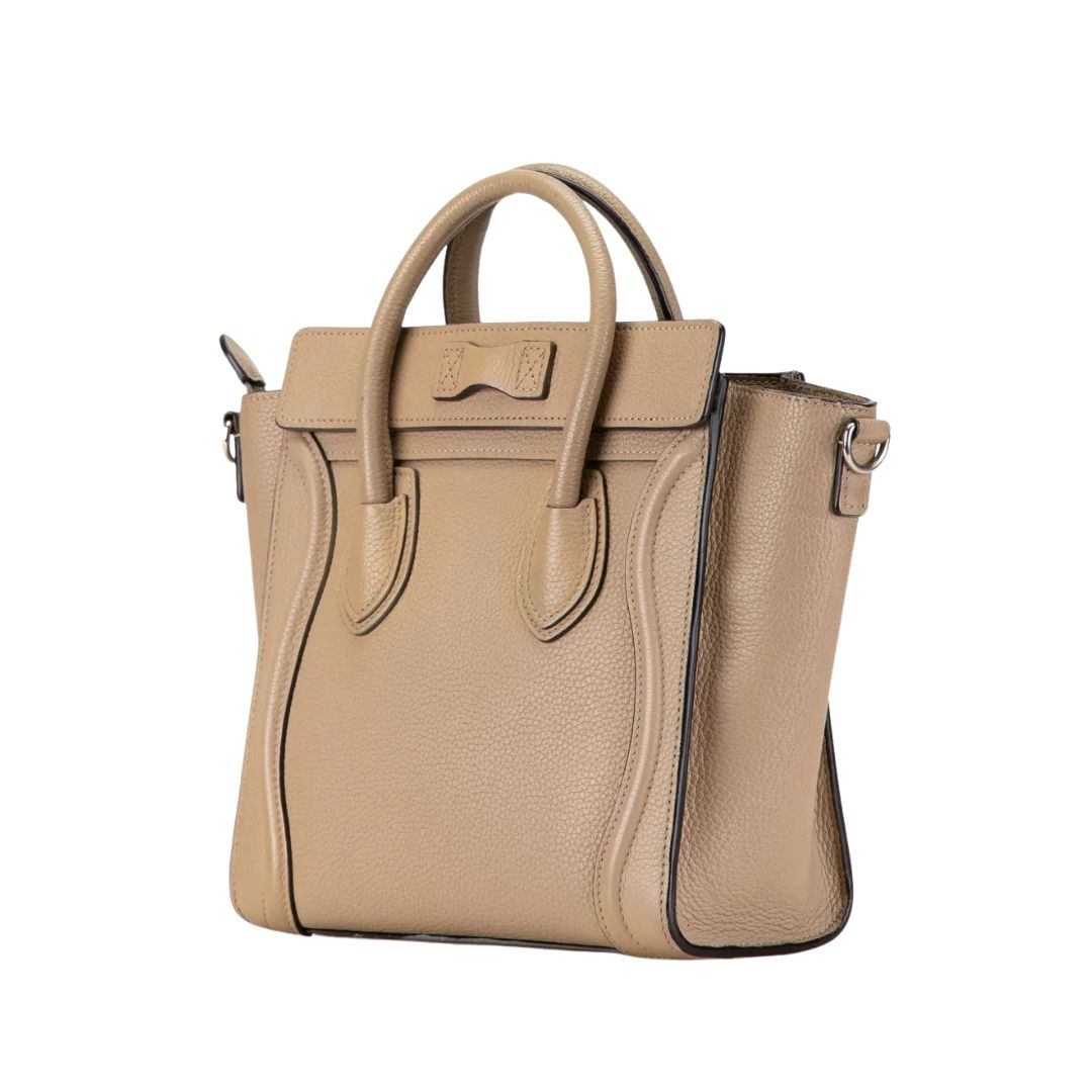 Dimensioni:● Larghezza: 31.5 cm● Altezza: 20 cm● Profondità: 14 cm Dettagli:● Materiale: Pelle di vitello lucida● Colore: Beige sabbia● Chiusura: