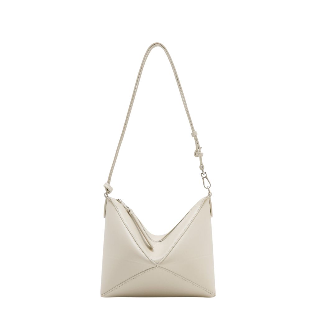 Dimensioni:● Larghezza: 20.5 cm● Altezza: 13 cm● Profondità: 6 cm Dettagli:● Materiale: Pelle liscia di vitello● Colore: Bianco latte● Chiusura: