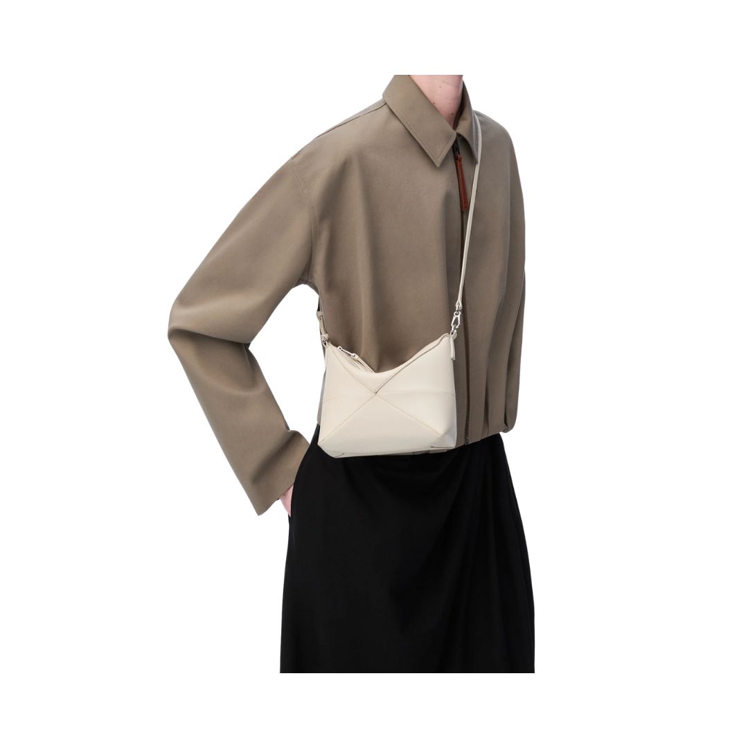 Borsa Puzzle Fold mini in nappa lucida avorio e beige 15,5 cm