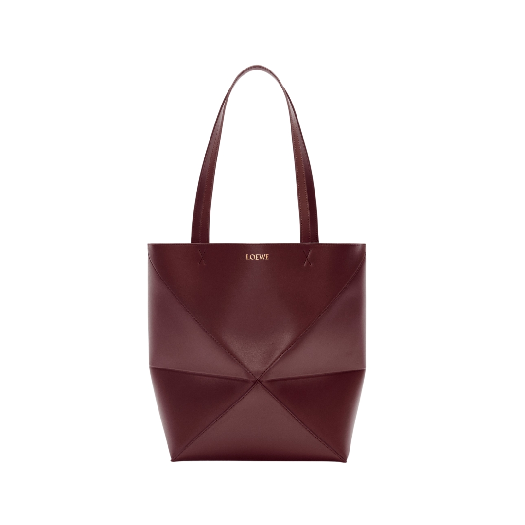 Borsa Puzzle Fold media in pelle lucida bordeaux 31,5 cm
