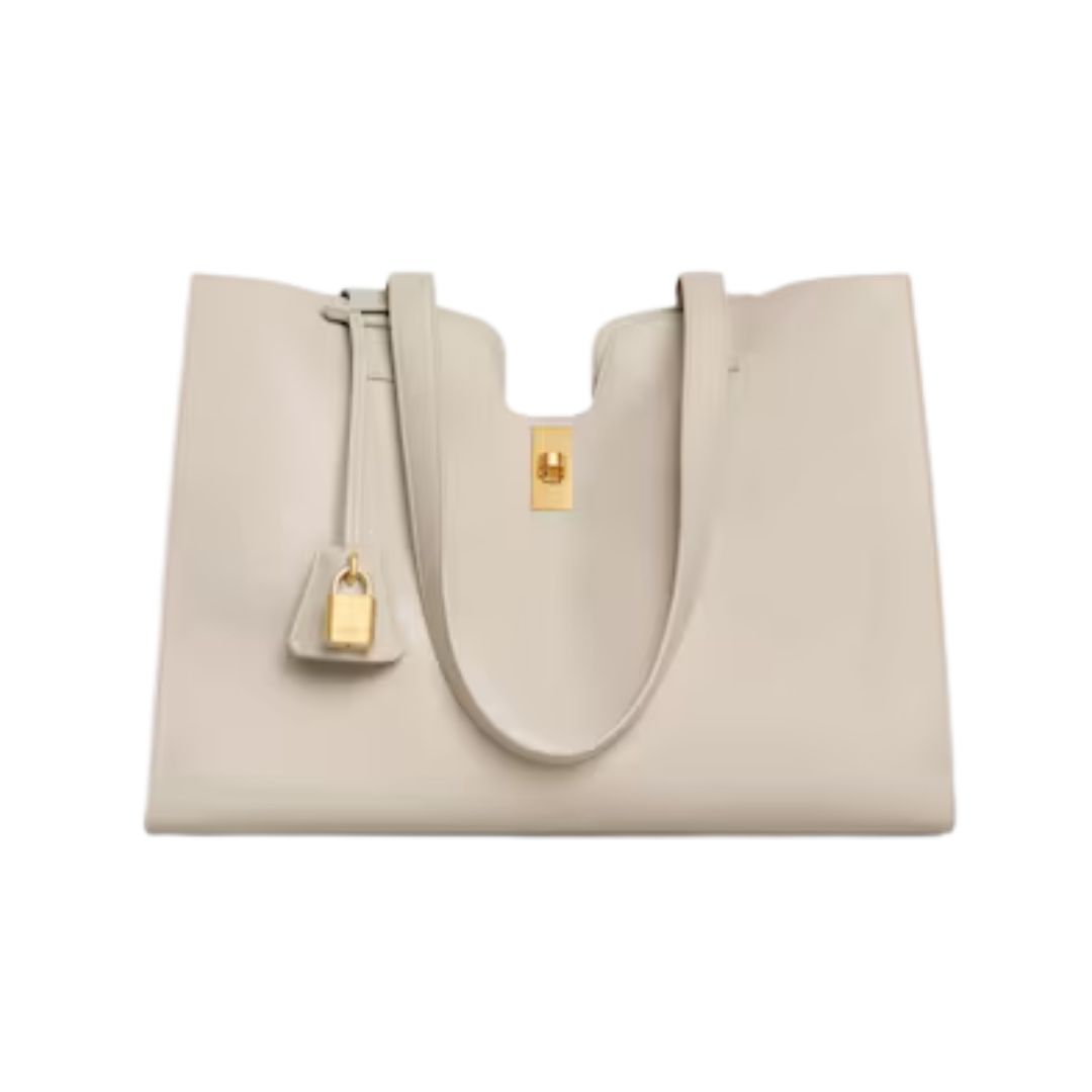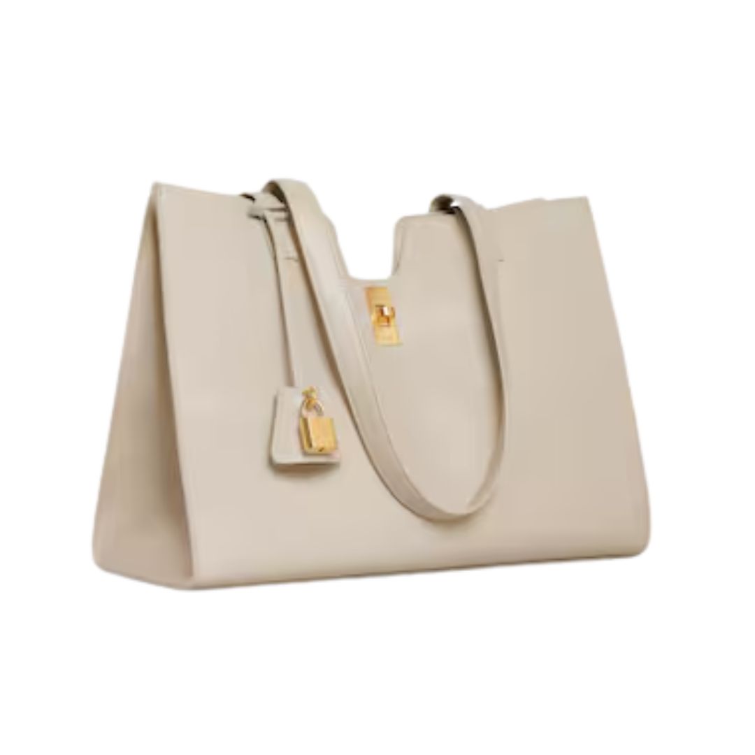 Dimensioni:● Larghezza: 37 cm● Altezza: 26 cm● Profondità: 17 cm Dettagli:● Materiale: Pelle liscia di vitello● Colore: Bianco avorio● Chiusura: