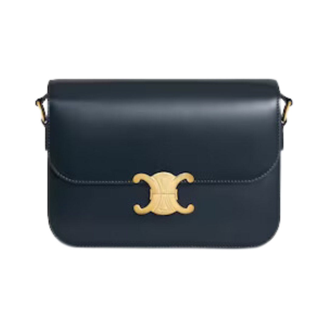 Borsa Celine Triomphe Classique in pelle lucida blu notte 22 cm