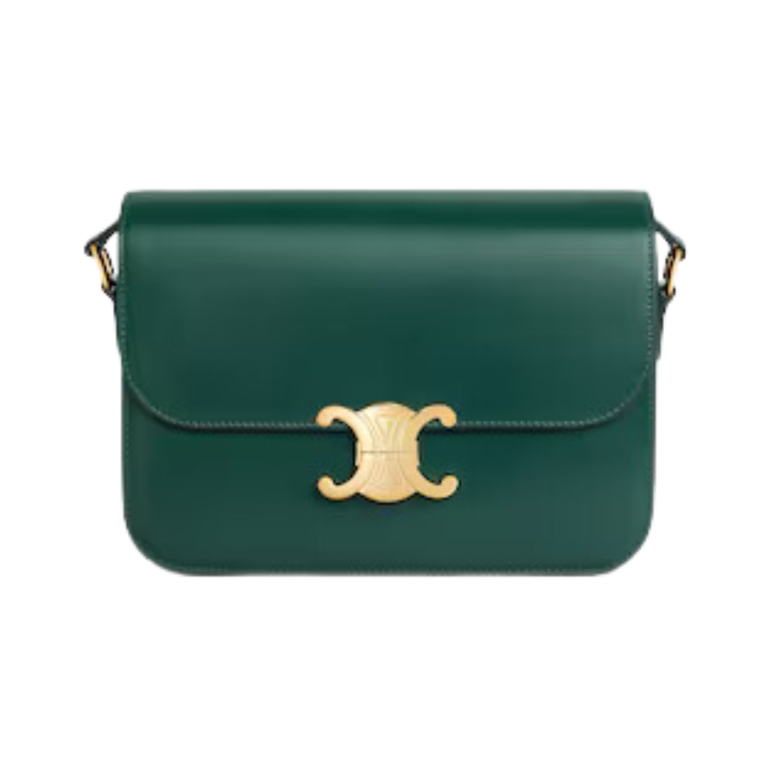 Borsa Celine Triomphe Classique in pelle lucida verde foresta 22 cm