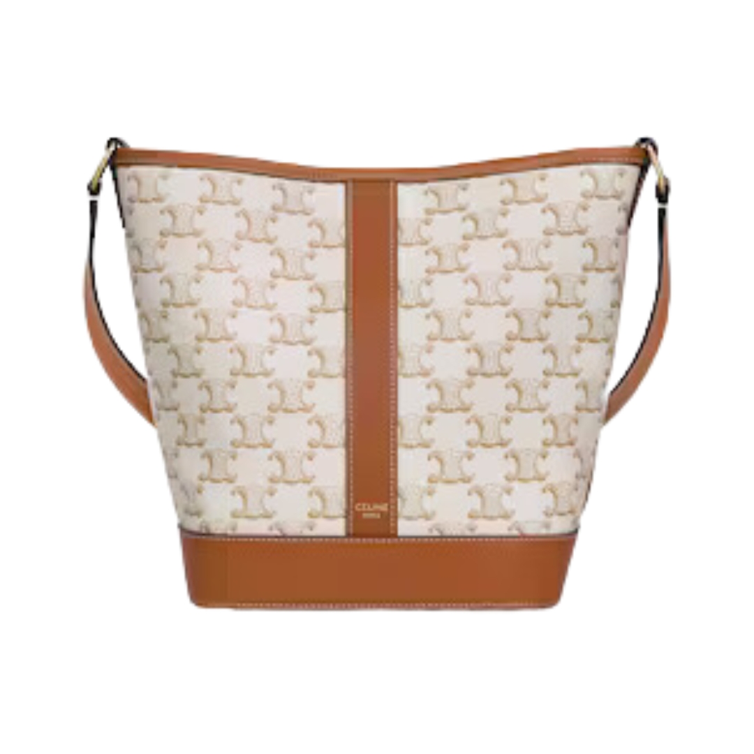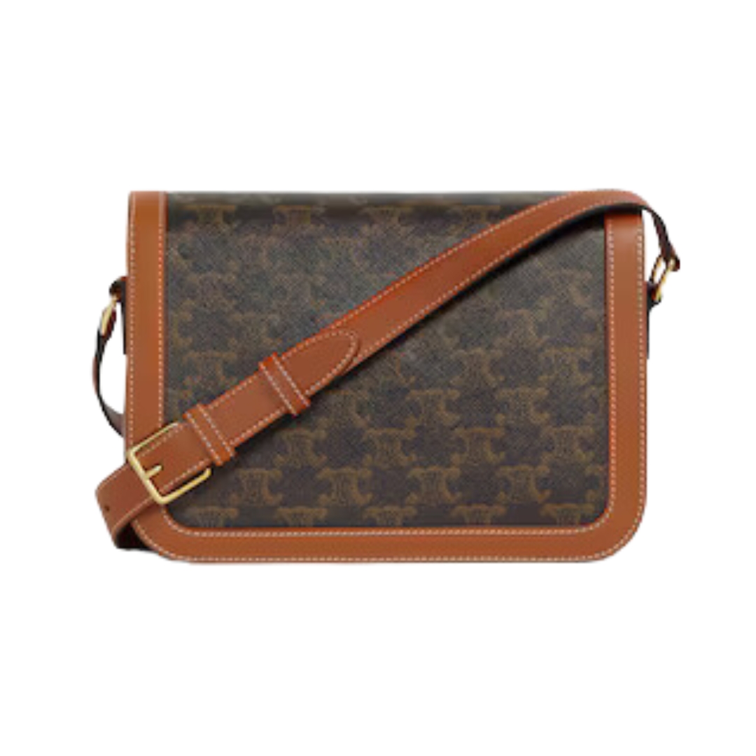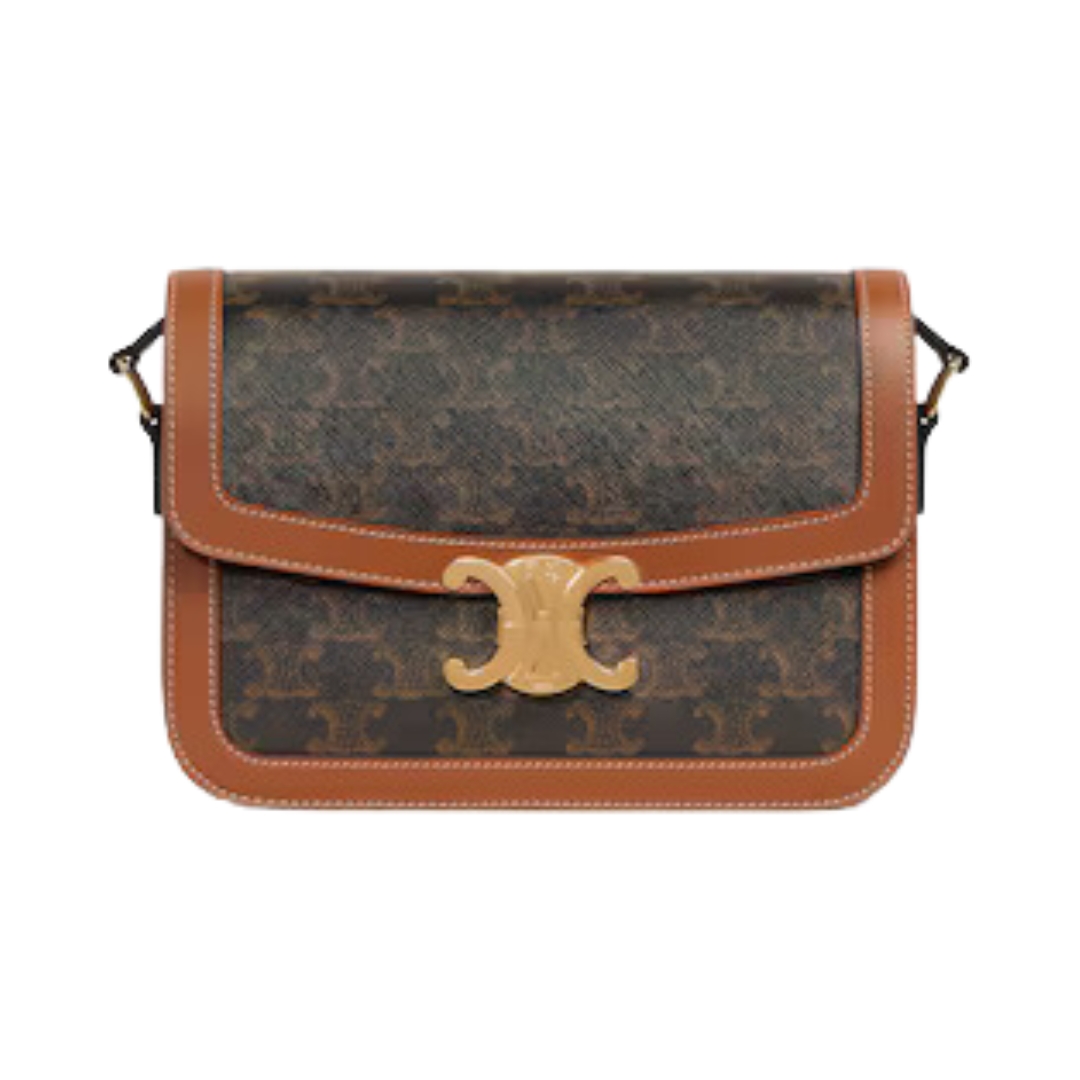Borsa Celine Triomphe 24,5 cm in canvas e pelle tan