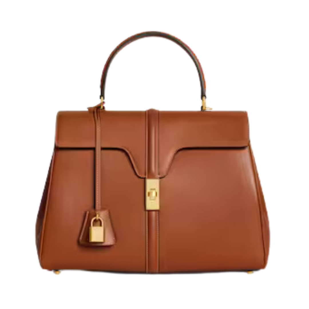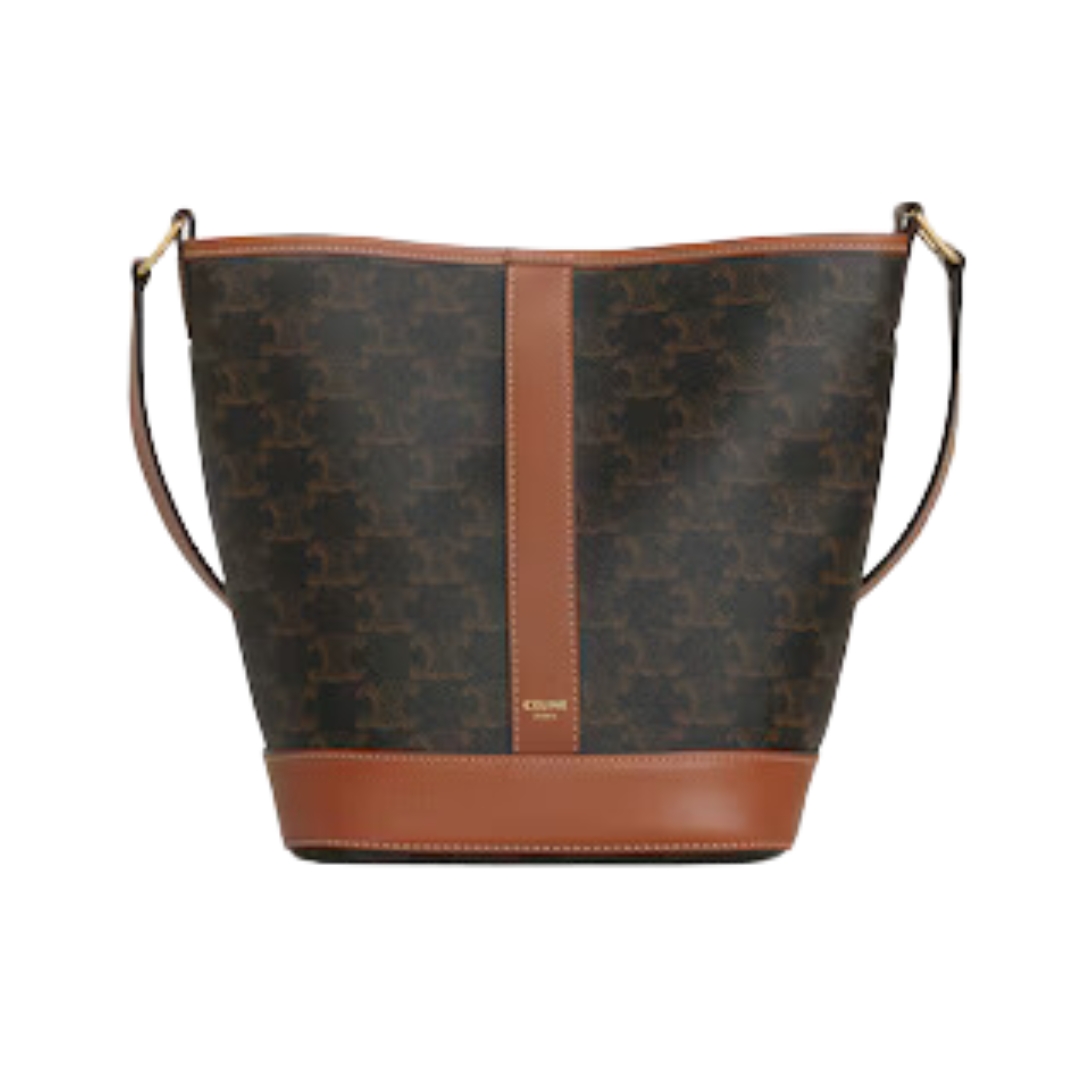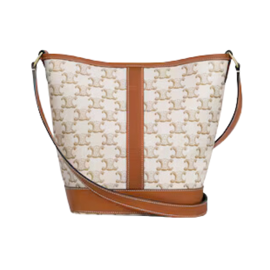 Borsa Celine Triomphe 24,5 cm in canvas e pelle tan