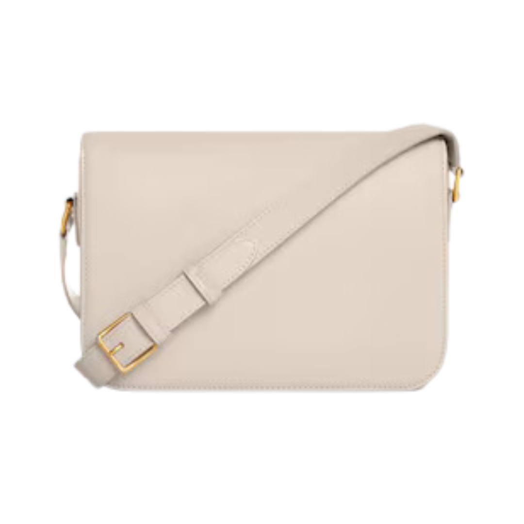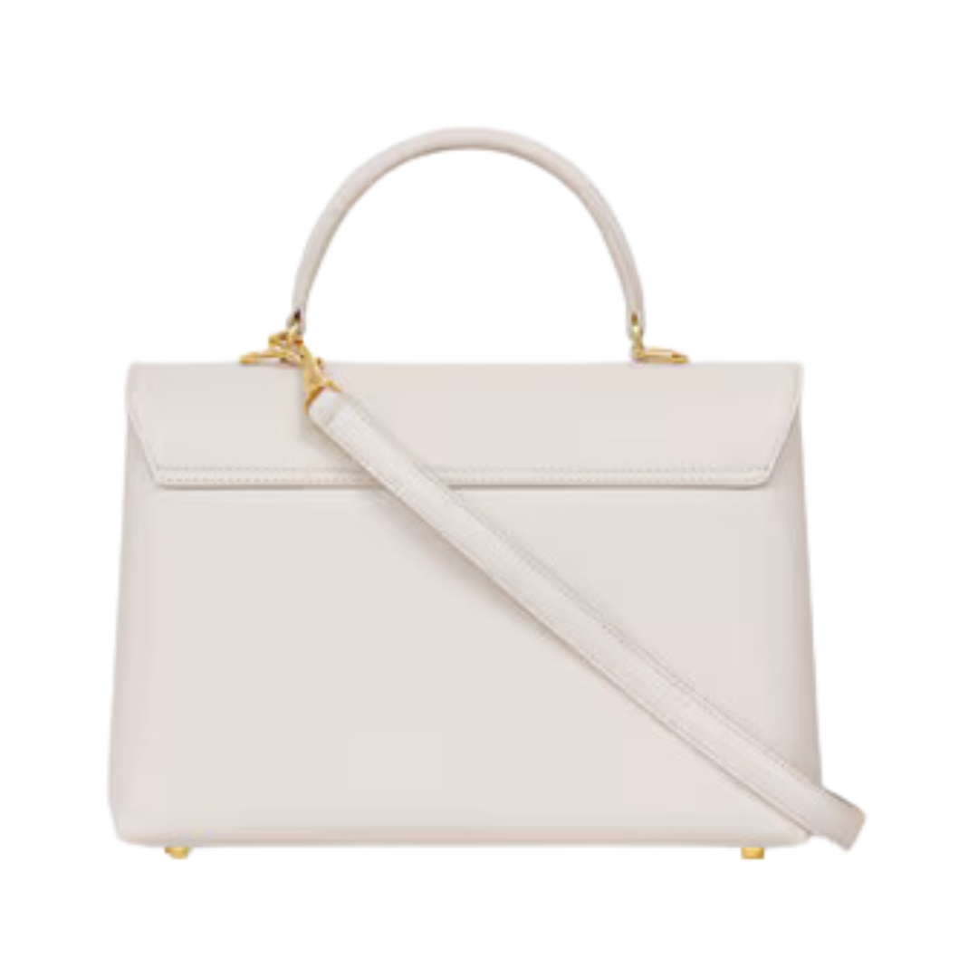 Dimensioni:● Larghezza: 25 cm● Altezza: 18 cm● Profondità: 8 cm Dettagli:● Materiale: Pelle di vitello satinata● Colore: Bianco● Chiusura: Patta