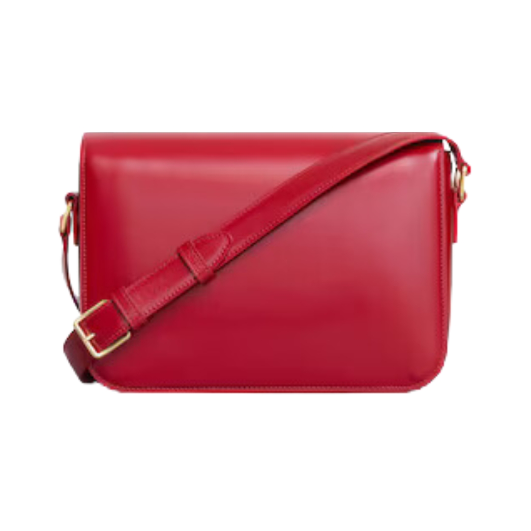 Dimensioni:● Larghezza: 22 cm● Altezza: 14 cm● Profondità: 7 cm Dettagli:● Materiale: Pelle di vitello lucida● Colore: Rosso● Chiusura: Chiusura