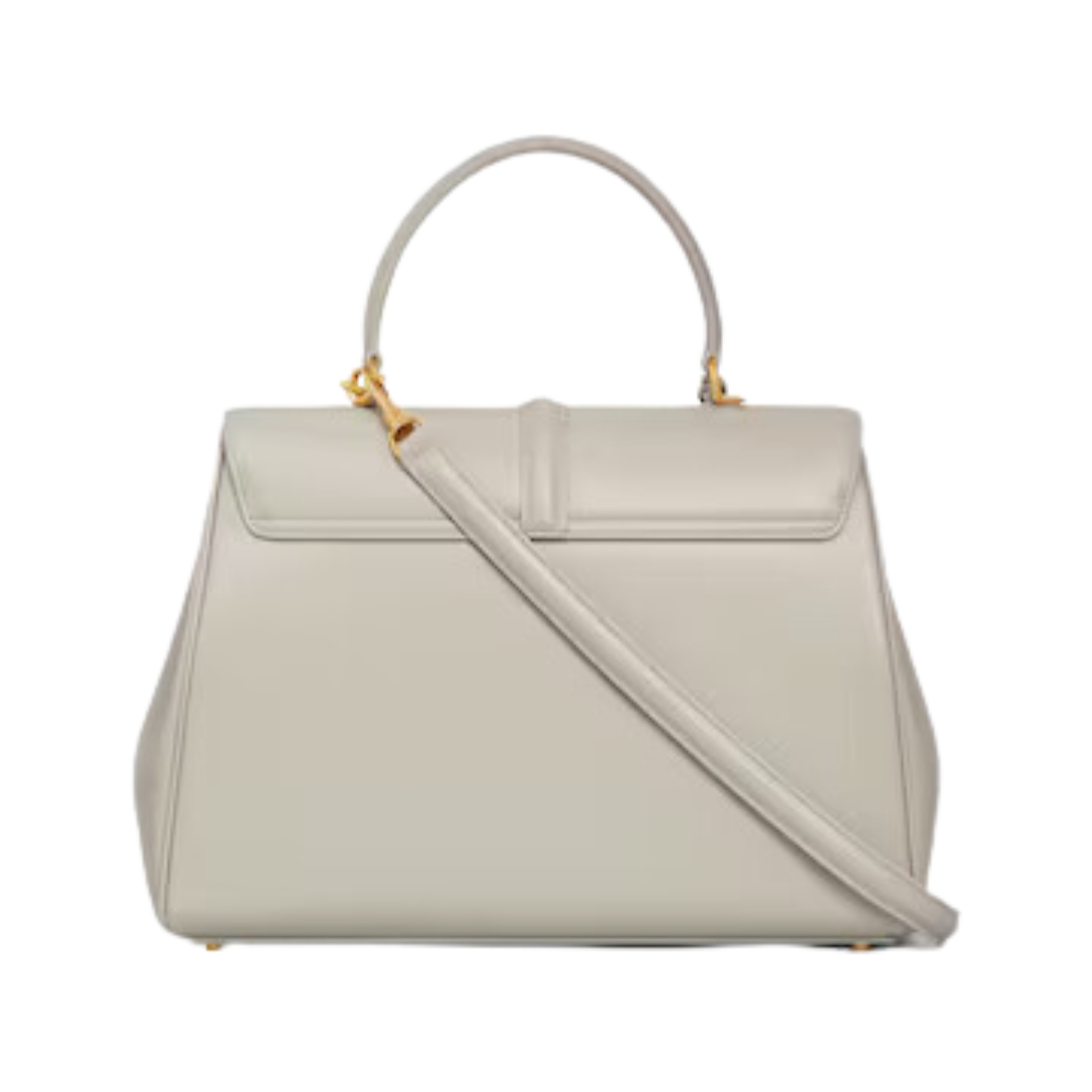 Dimensioni:● Larghezza: 39 cm● Altezza: 30 cm● Profondità: 14 cm Dettagli:● Materiale: Pelle Box di vitello liscia● Colore: Grigio perla●