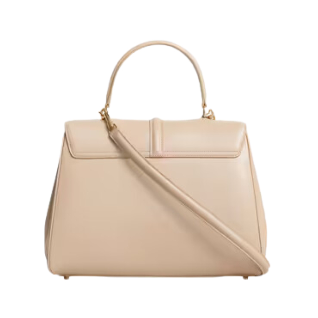 Dimensioni:● Larghezza: 39 cm● Altezza: 30 cm● Profondità: 14 cm Dettagli:● Materiale: Pelle Box di vitello rigida● Colore: Beige cipria●