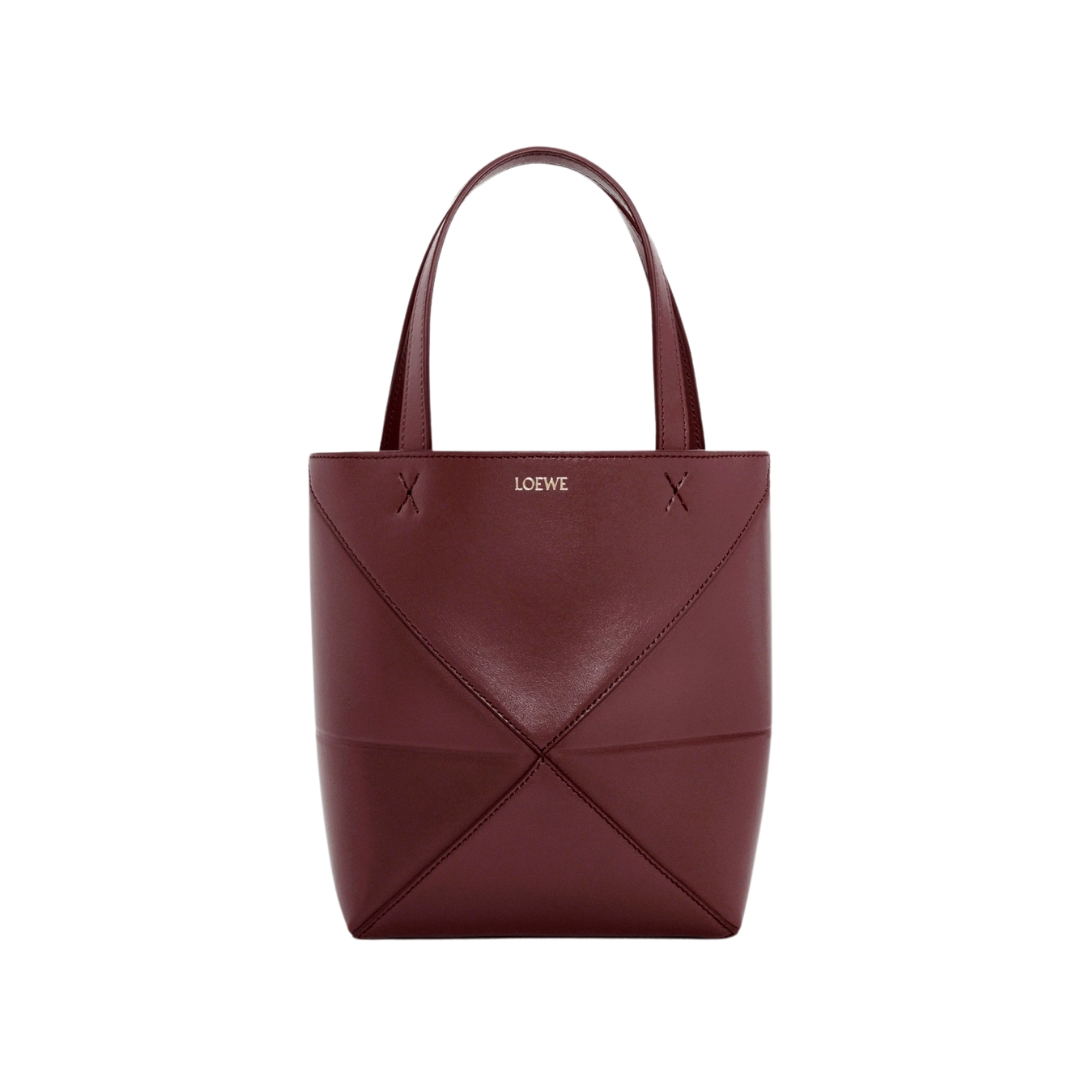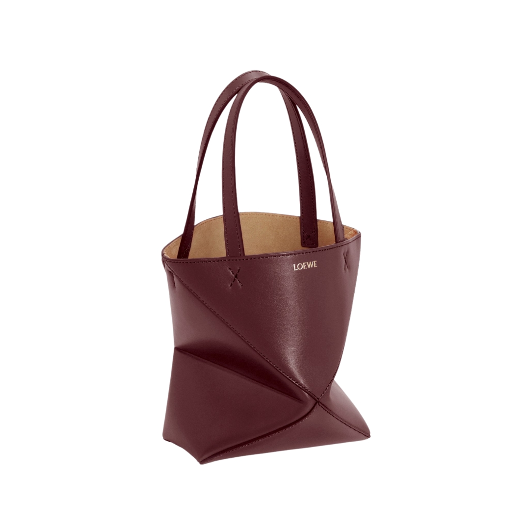 Borsa Loewe Mini Puzzle Fold Tote in pelle bordeaux scuro 20 cm
