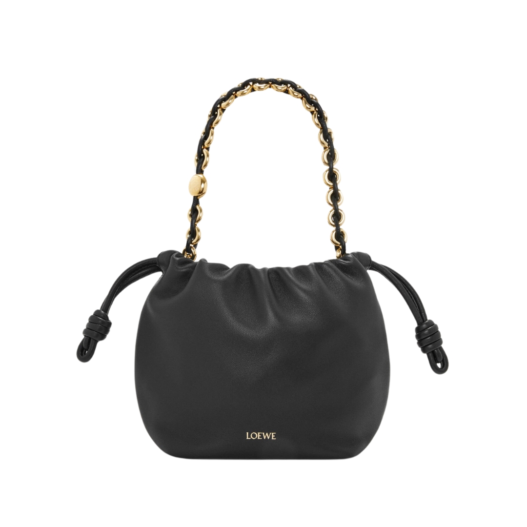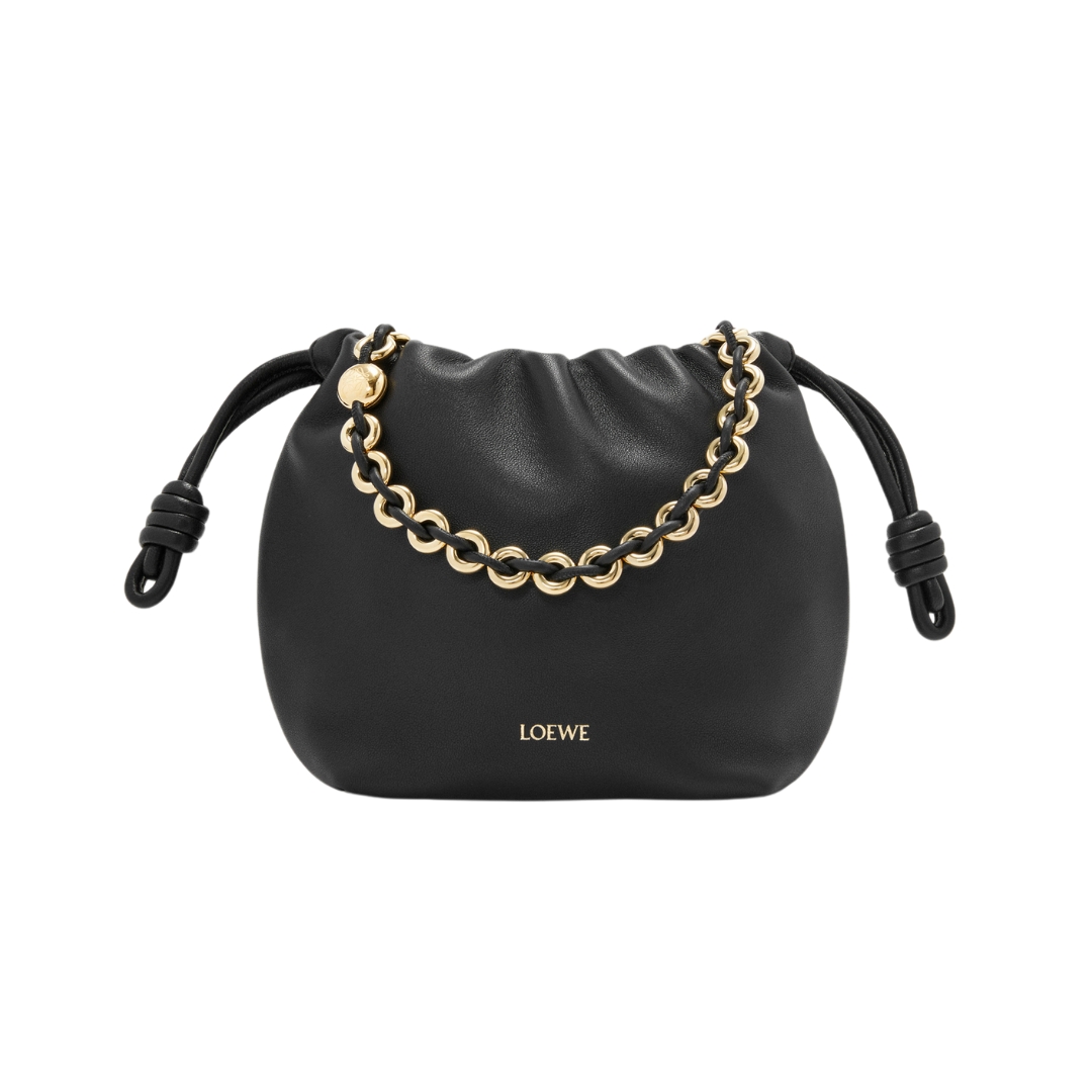 Borsa Loewe Mini Flamenco in pelle nera 17 cm