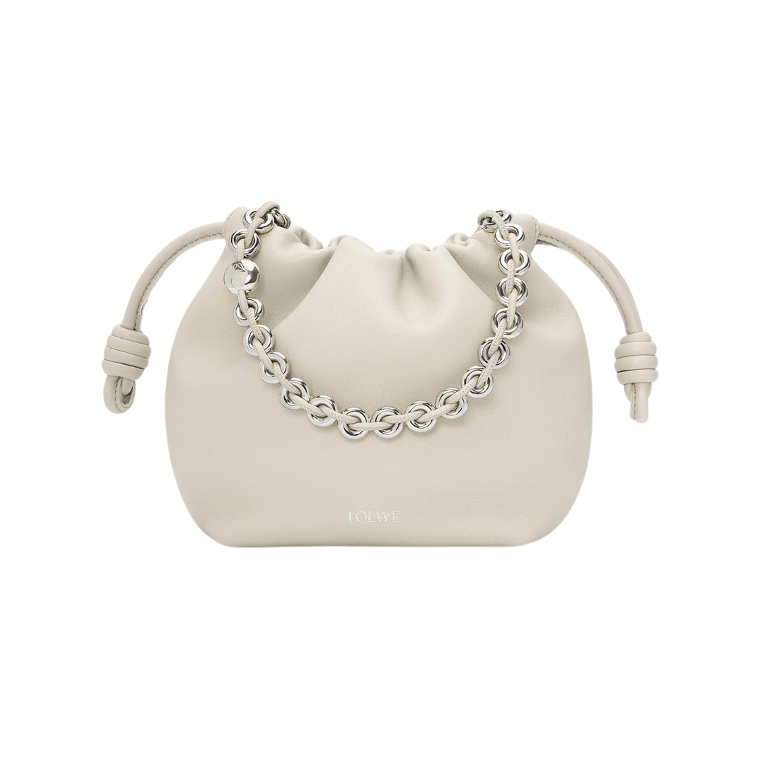 Borsa Loewe Mini Flamenco in pelle bianca sale marino 17 cm