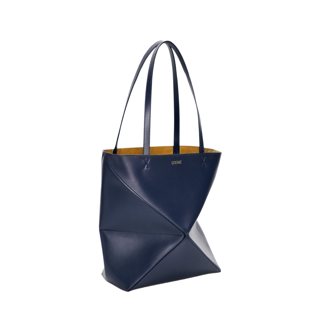 Borsa Loewe Puzzle Fold Tote media in pelle blu abisso 31,5 cm