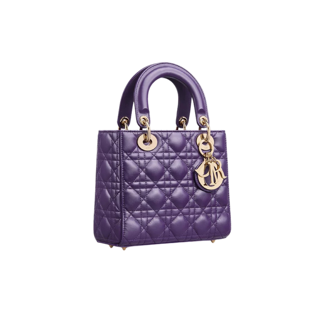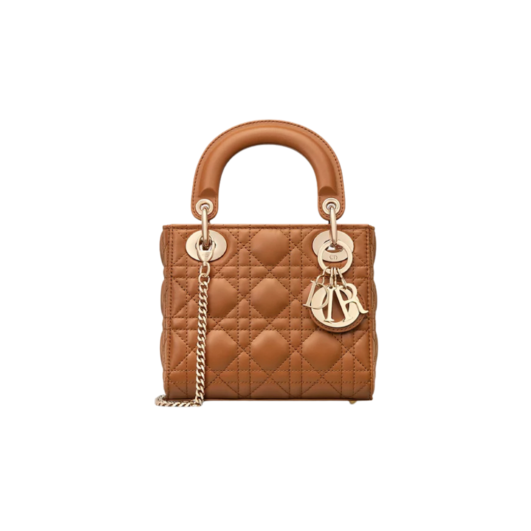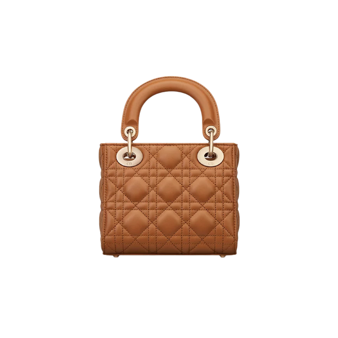 Borsa Dior Mini Lady Dior in agnello marrone dorato con motivo Cannage 17 cm