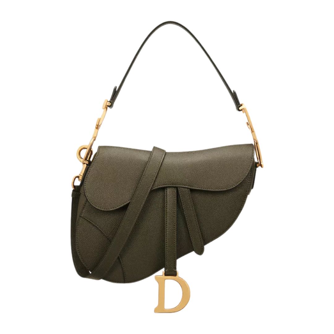 Borsa Dior Saddle in pelle khaki 25,5 cm