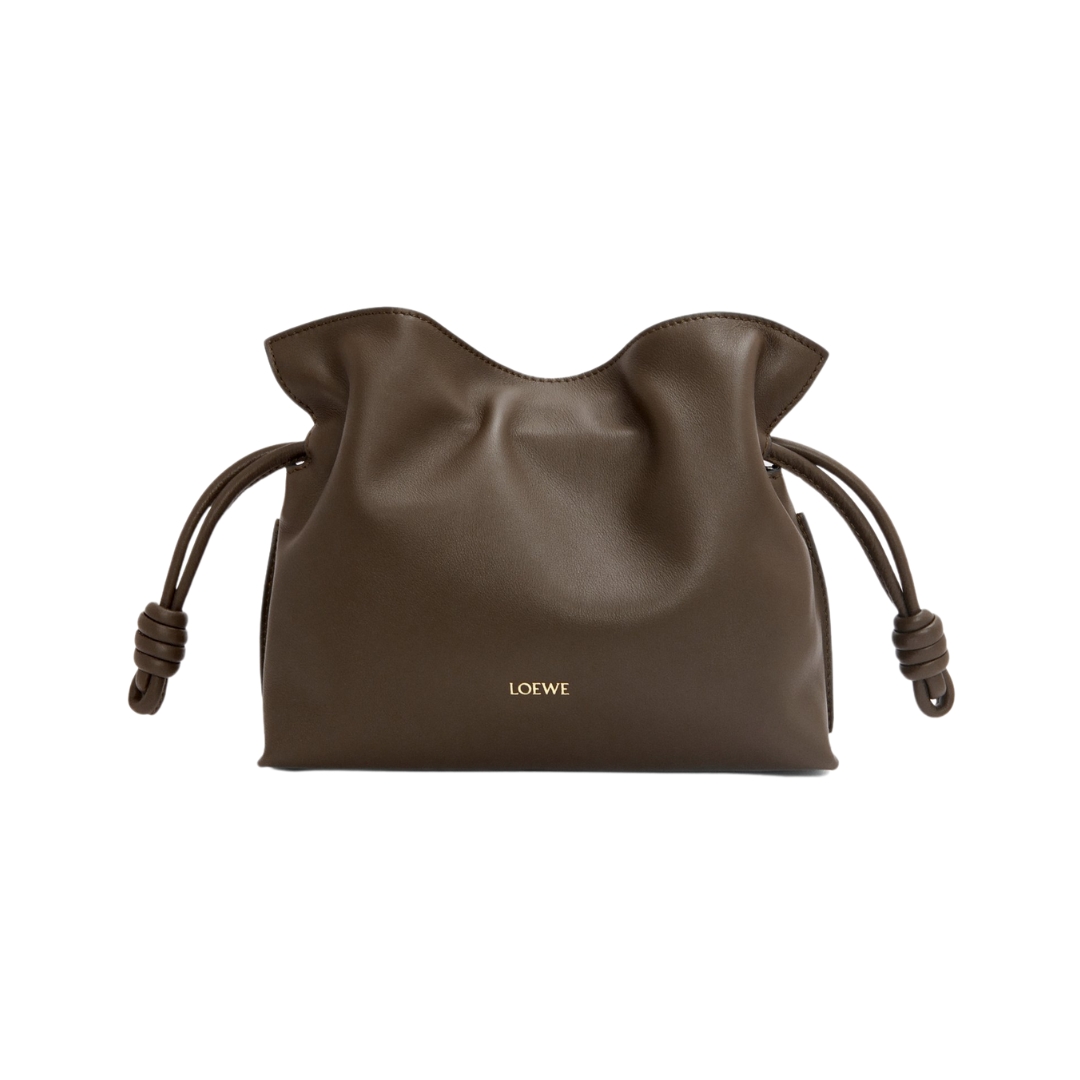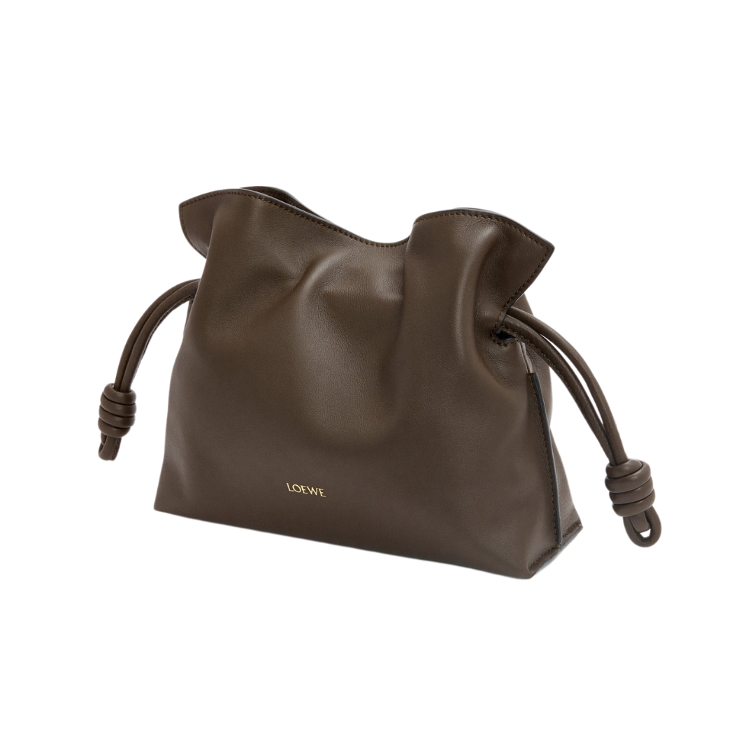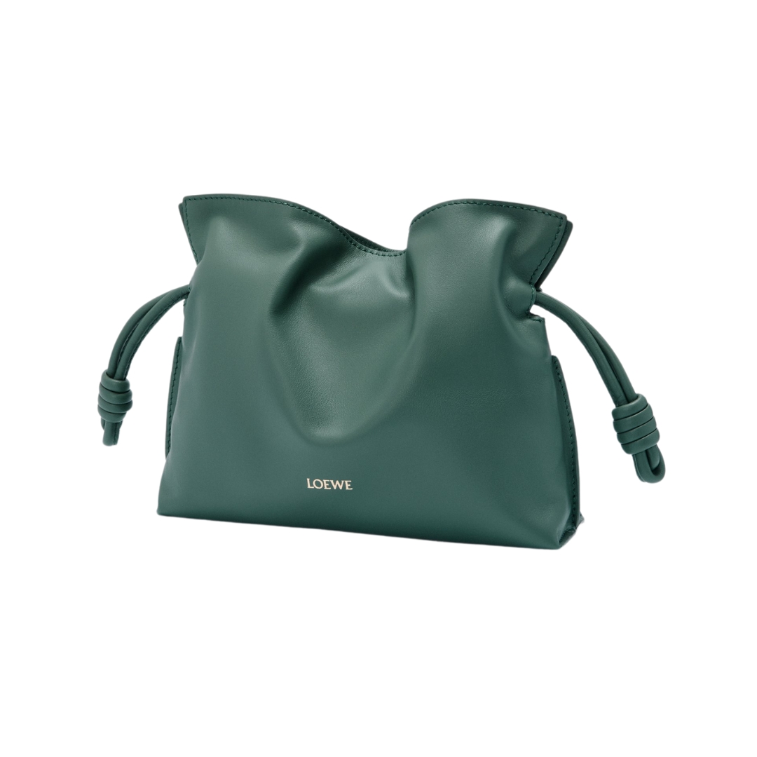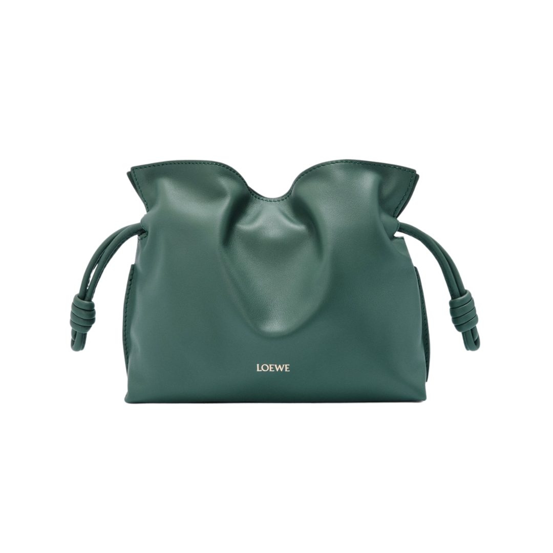 Borsa Loewe Mini Flamenco Clutch in pelle di nappa color kaki 18 cm