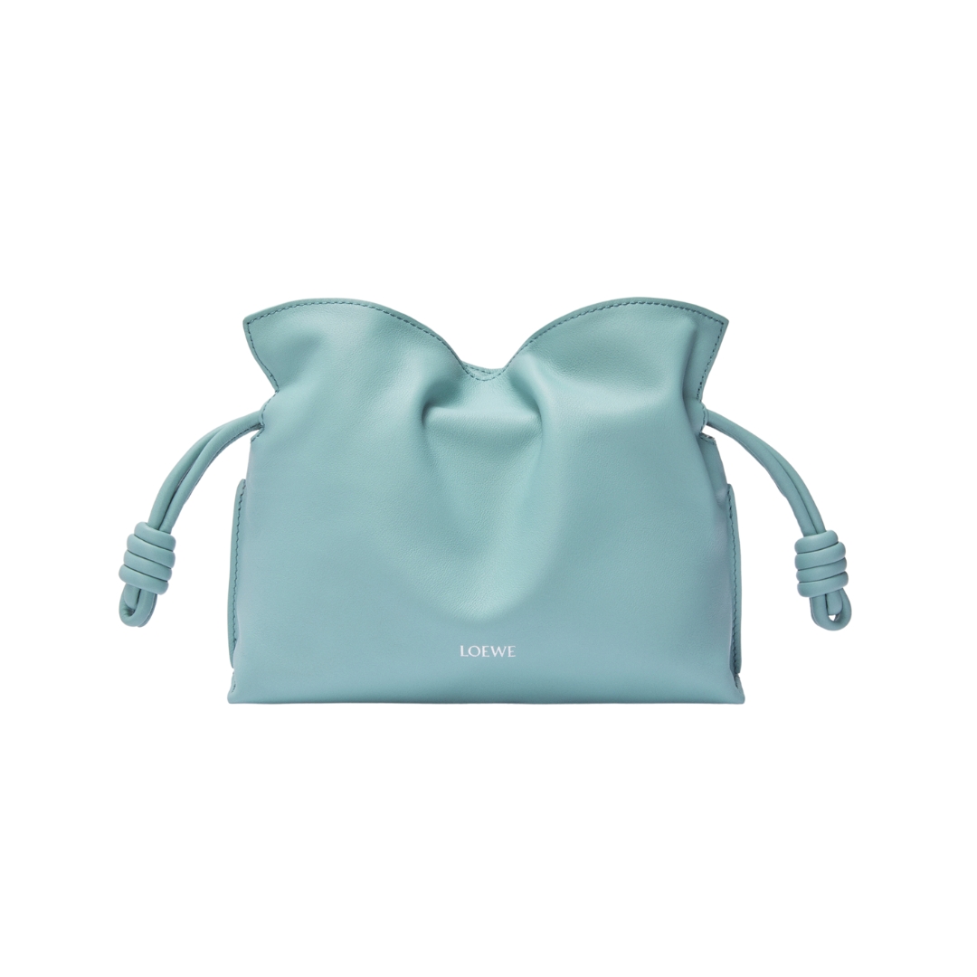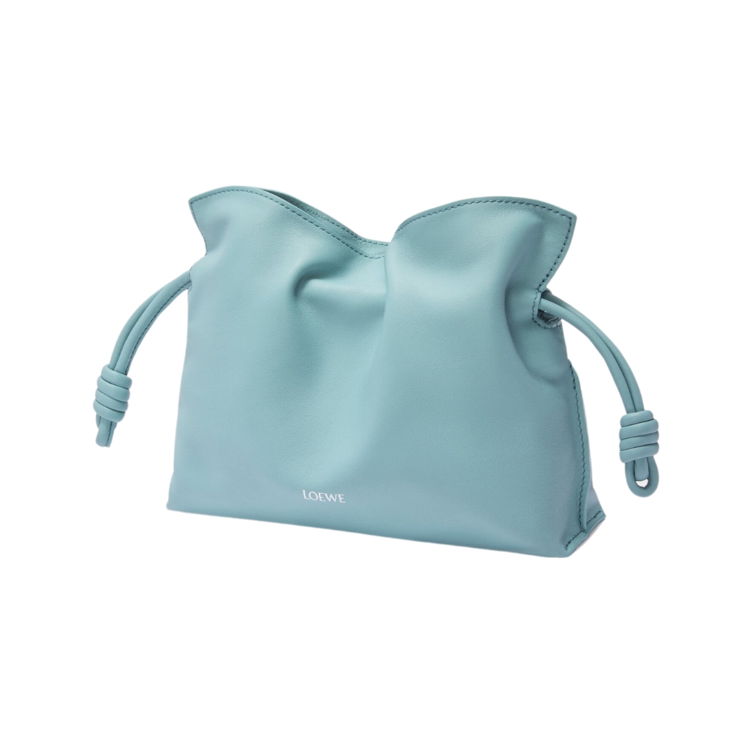 Borsa Loewe Mini Flamenco Squid in pelle di nappa color acqua 18 cm