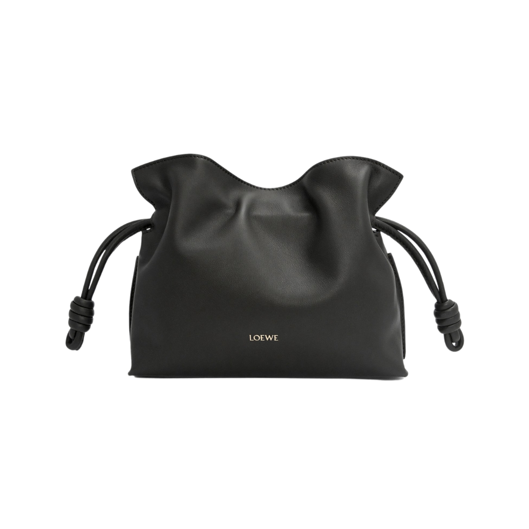 Borsa Loewe Mini Flamenco Clutch in pelle di nappa nera 18 cm