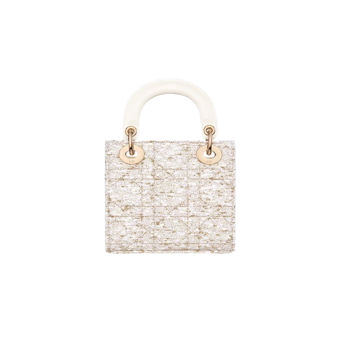 Borsa Mini Lady Dior in tessuto tweed bianco e oro 17 cm