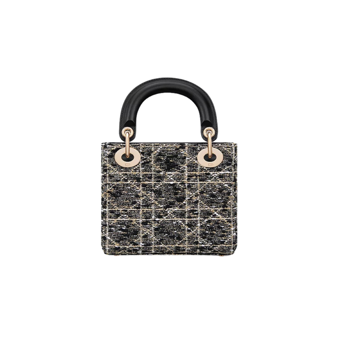 Borsa Mini Lady Dior in tessuto tweed nero e oro 17 cm