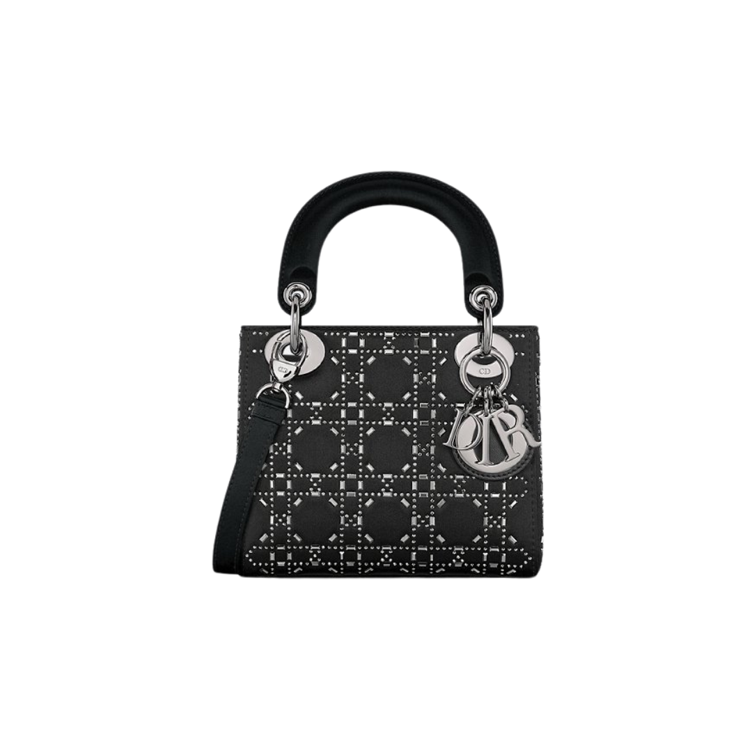 Borsa Dior Mini Lady Dior Bag Satin Strass nera 17 cm