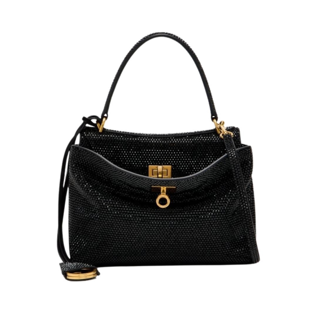 Borsa Balenciaga Rodeo a spalla in pelle di vitello nera 22 cm