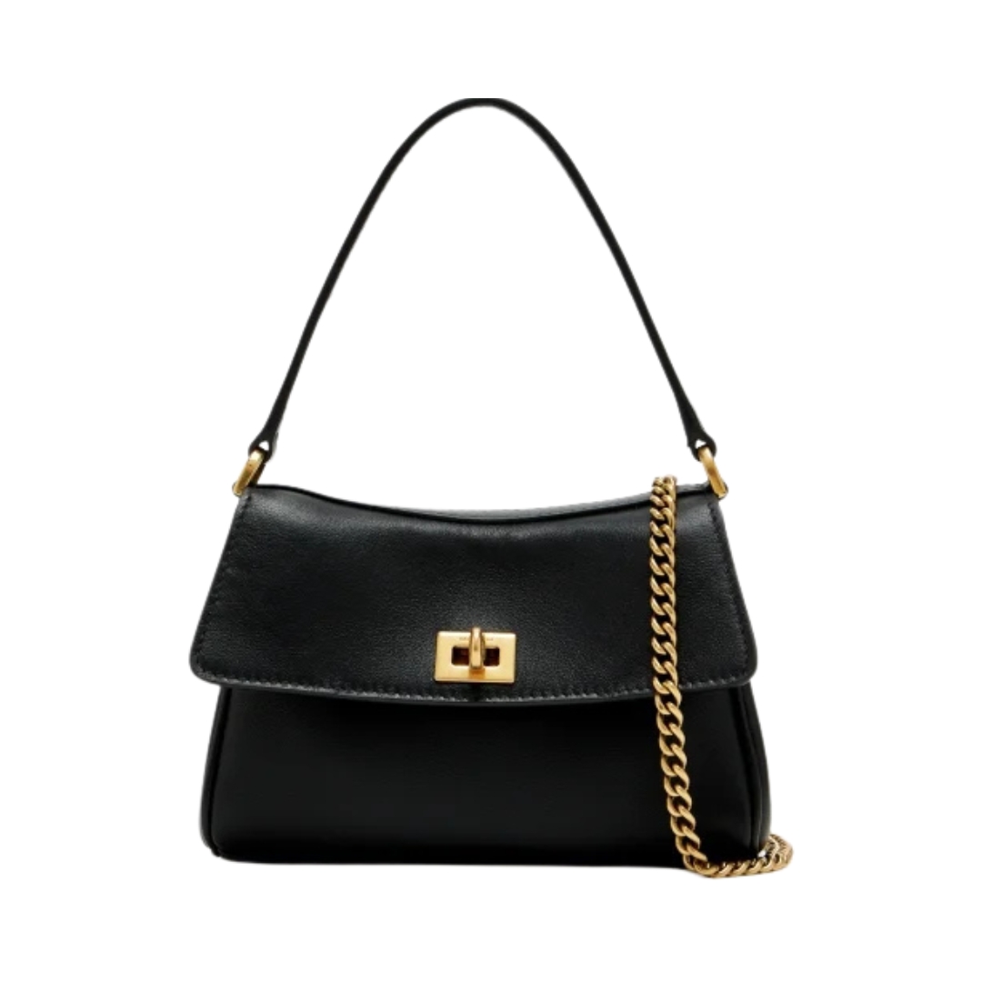 Dimensioni:● Larghezza: 22 cm● Altezza: 15 cm● Profondità: 8 cm Dettagli:● Materiale: Pelle di vitello● Colore: Nero● Chiusura: Patta con