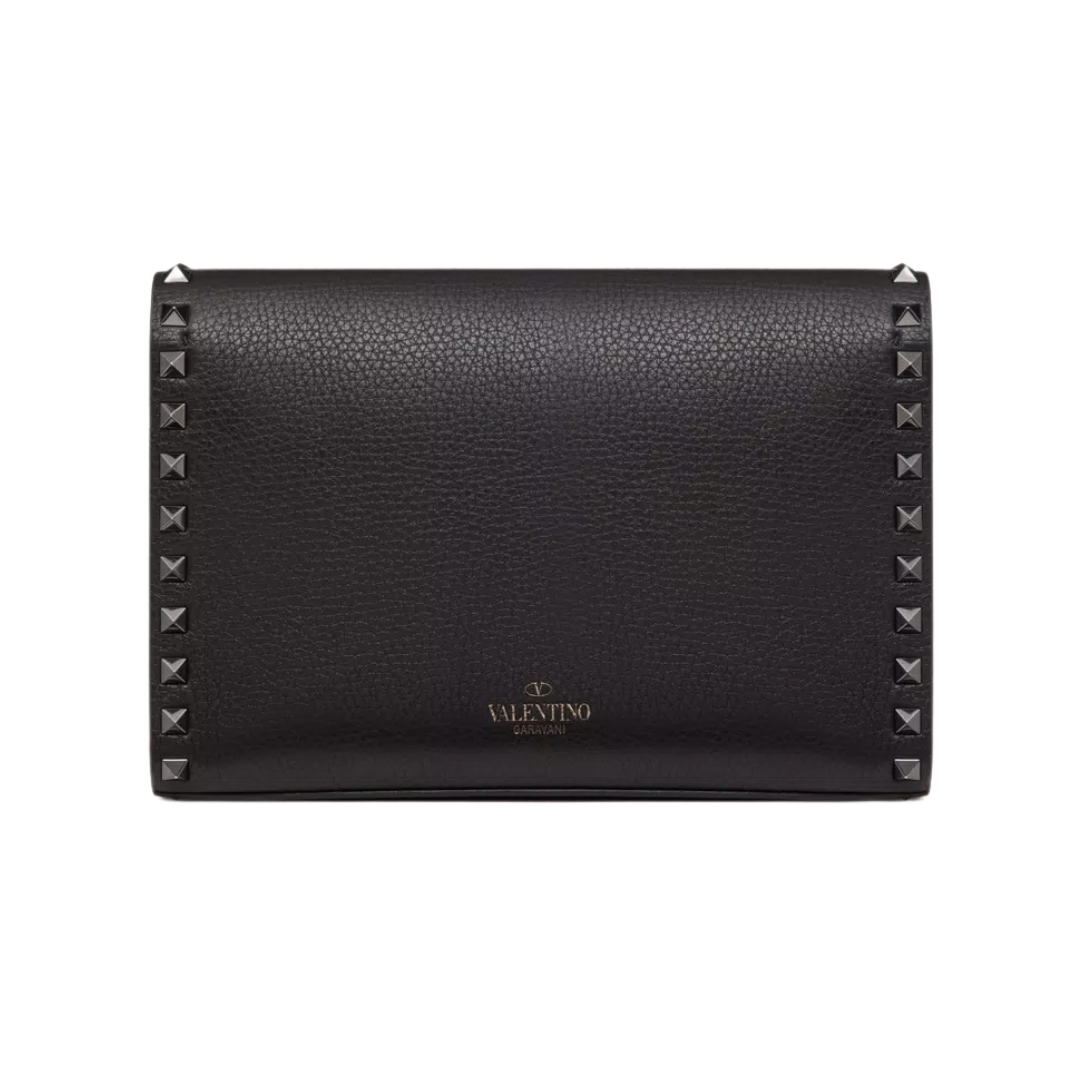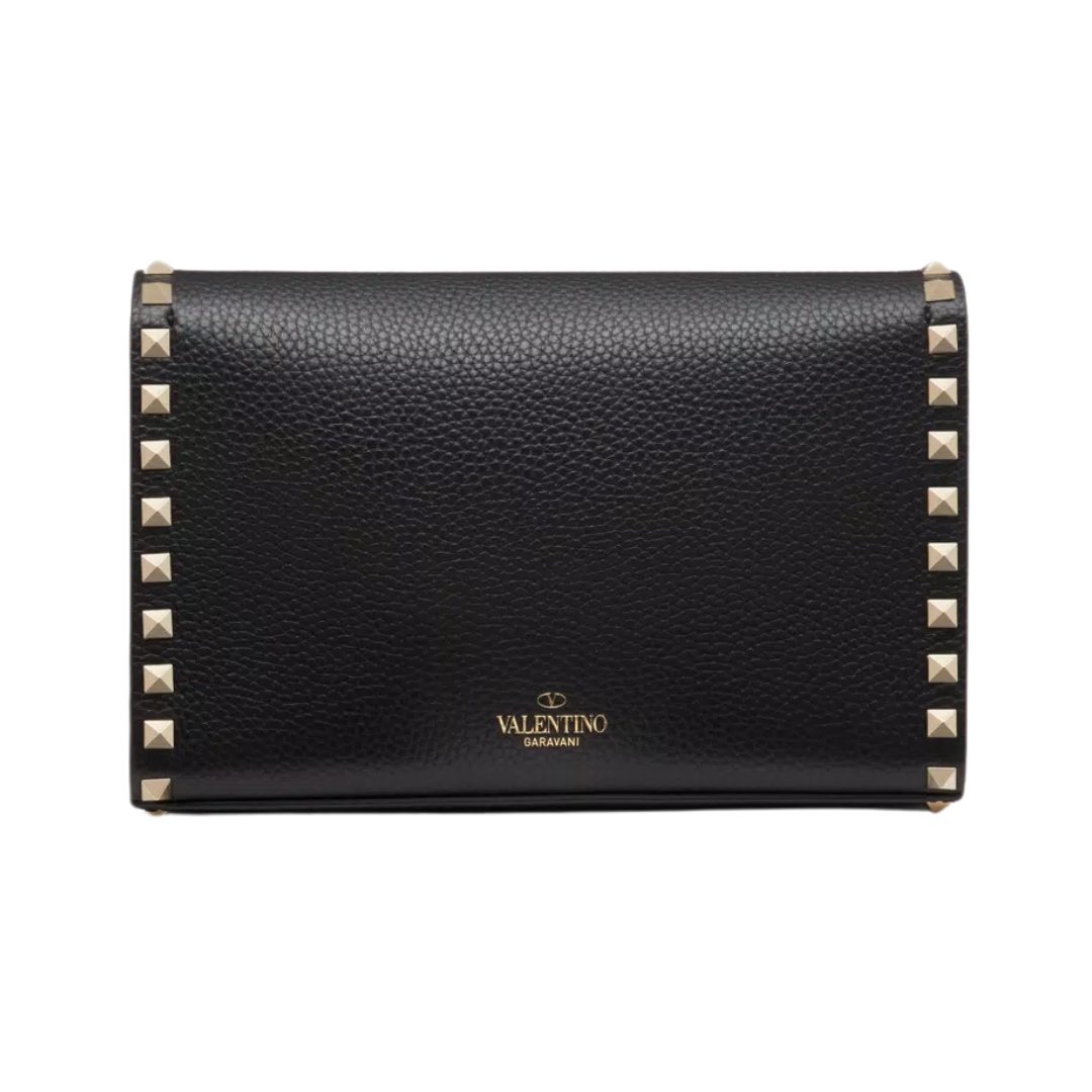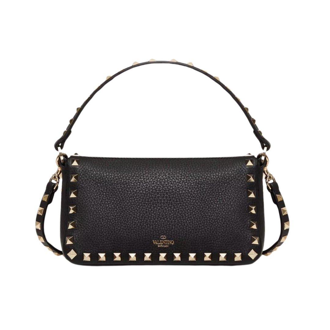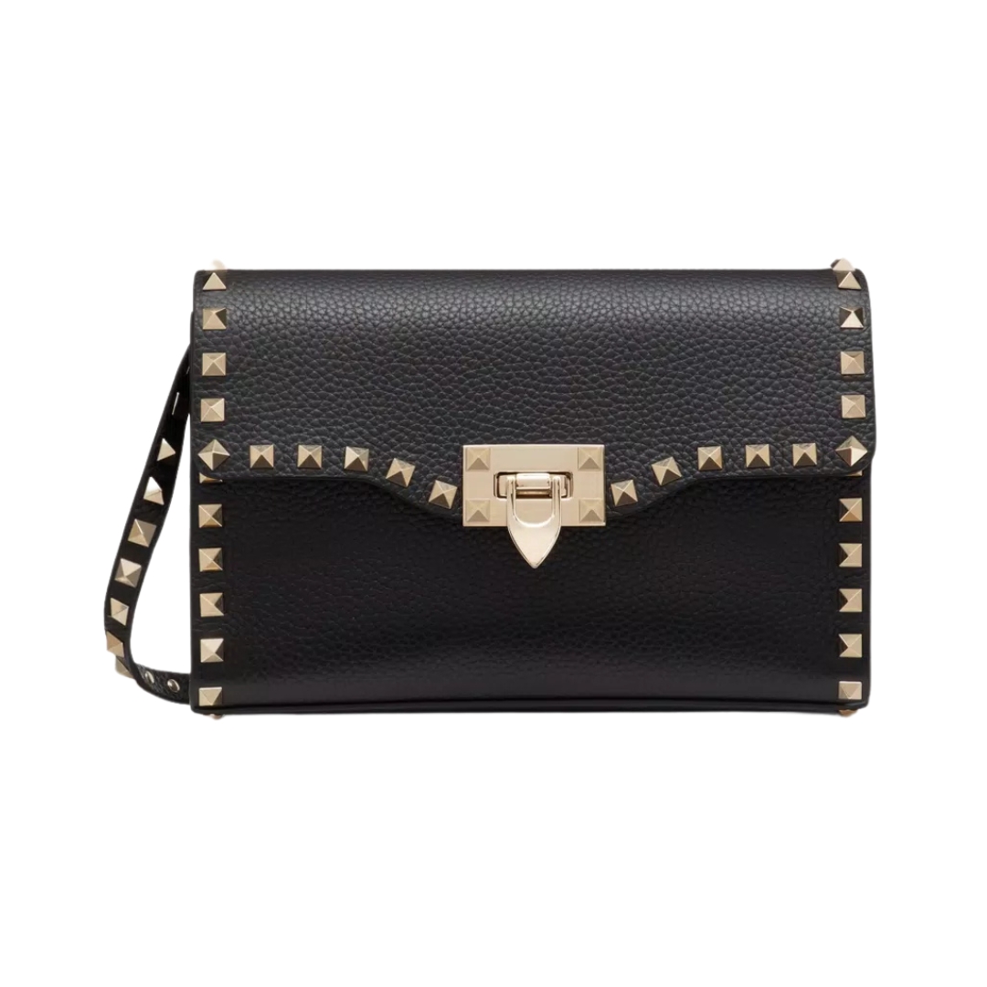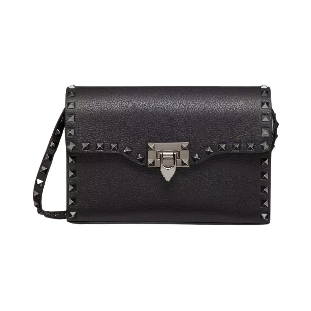 Borsa Valentino crossbody in pelle nera con borchie 19 cm