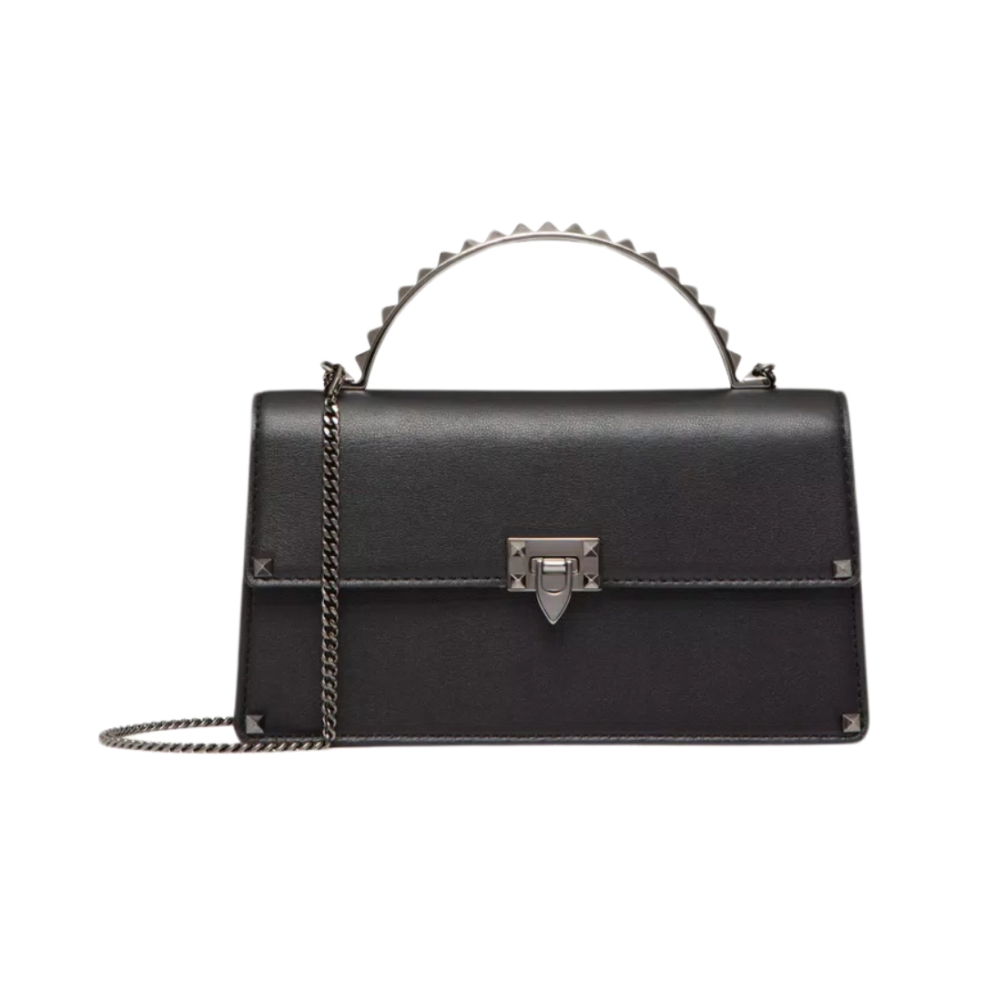 Borsa Valentino Mini Rockstud in pelle nera 19 cm