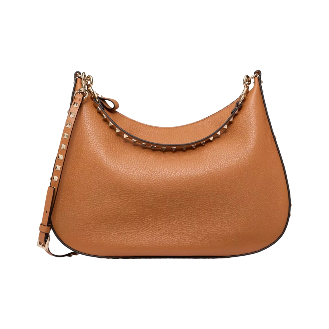 Borsa Valentino Rockstud Hobo in pelle color mandorla 36 cm