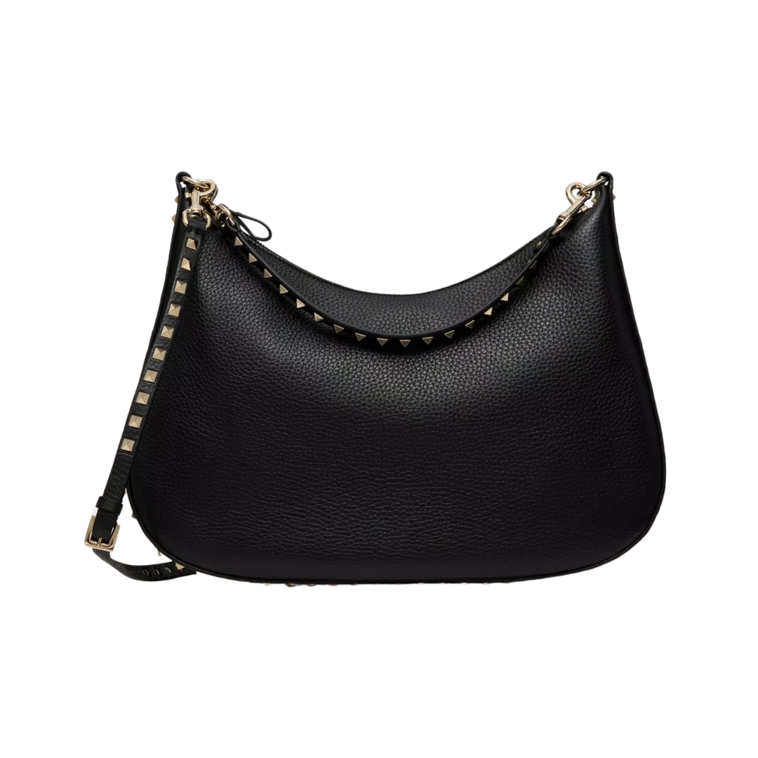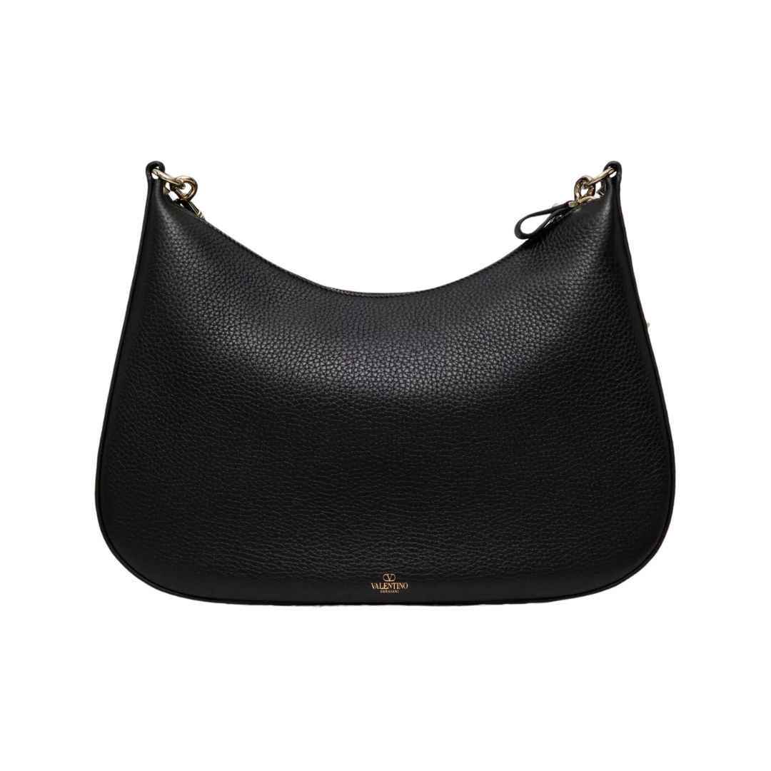 Borsa Valentino Rockstud Hobo in pelle nera 36 cm