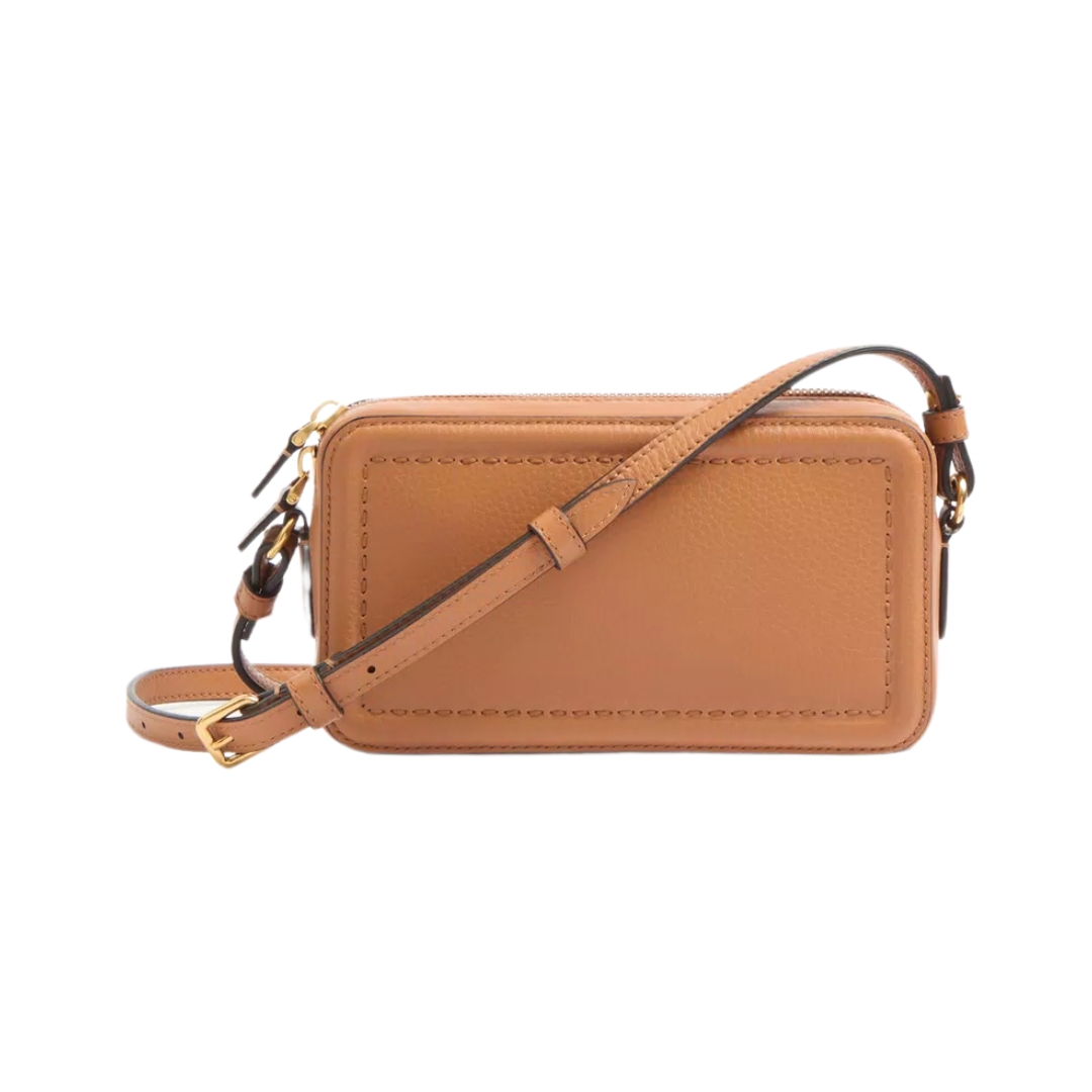 Dimensioni:● Larghezza: 19 cm● Altezza: 11 cm● Profondità: 5 cm Dettagli:● Materiale: Pelle di vitello liscia● Colore: Mandorla● Chiusura: Zip