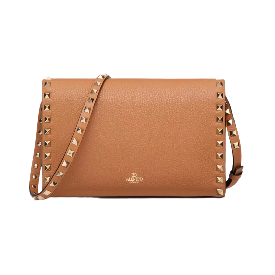 Borsa Valentino crossbody in pelle color mandorla 22.5 cm