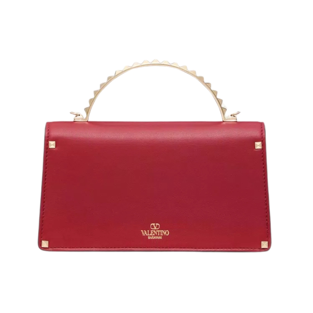 Borsa Valentino Mini Rockstud in pelle rossa 19 cm