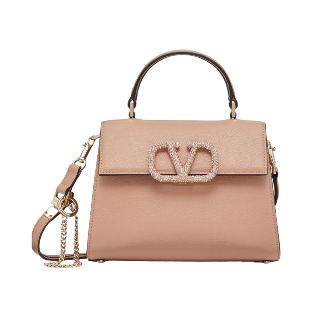 Borsa Valentino Juwel Logo in pelle rosa cannella 20 cm